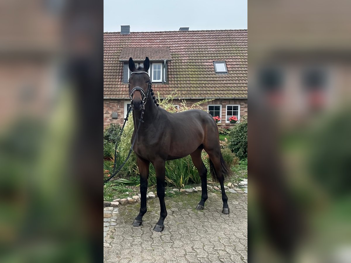 Ostertanz weiß die Blicke auf sich zu ziehen. Ein hervorragender, losgelassener und durch den Köper fließender Schritt, ein aktives Hinterbein und das gute Fundament zeichneten ihn bereits als Fohlen aus. So wurde er mit Bestnoten ausgezeichnet, war das am höchsten bewertete Fohlen der Musterungsreise 2023, wurde Reservesieger des Fohlenchampionats in Tarmstedt und trägt zudem den Titel Championatsfohlen im Pass. Nun ist er 2 Jahre alt, leicht antrainiert und bereit für neue Aufgaben. Sein feiner, trockener Kopf schreibt ihm den Trakehner förmlich auf die Stirn und seine Herkunft muss er definitiv nicht verstecken. Vater und Pr. Hengst TSF Gaspard von His Moment x E.H. Imperio überzeugt neben Schwung, Schulterfreiheit, und toller Mechanik in der Bewegung mit Attributen wie Rittigkeit, Leichtfüßigkeit und Charme, die er deutlich an seine Sprösslinge weitergibt. In den letzten Jahren hat er sich kontinuierlich als Dressurhengst in die Weltelite vorgearbeitet und überzeugt mit Spitzenvorstellungen und der Teilnahme an der Weltmeisterschaft der jungen Pferde. (https://trakehnerzucht-derlin.com/gaspard/) Seine großrahmige Mutter Only You (All Inclusive - Marduc) steht ebenfalls voll im Trakehner Typ, war Auktionsstute in Neumünster und entspringt im Ursprung dem Stamm der O69A Oka – zu Dohna-Schlobitten. Ostertanz wird ein Hingucker mit Ausdruck und Bewegungsqualität für das große Viereck. Ein Diamant zum selber Ausbilden, der bereits alles Grundlegende (altersentsprechend) kann: Schmied, halftern, führen, trensen, longieren, Longiergurt, satteln, verladen, Anhänger fahren, Freispringen…. Kommen Sie gern vorbei und machen Sie sich selbst ein Bild! Videomaterial auf Anfrage auch im Umgang!