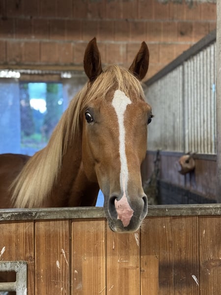 Han Solo Ist ein eleganter, wüchsiger, sehr Menschenbezogener Trakehner, mit einem Pedigree abseits vom Mainstream. (volles Papier und als Fohlen prämiert) Geboren 2023 Er ist brav im Umgang (führen, Schmied, Tierarzt) extrem Menschenbezogen hat aber auch viel Temperament und einen hohen Bewegungsdrang. Geht auch schon auf den Hänger und allein zur Bodenarbeit auf den Reitplatz! Aktuell ist er noch Hengst kann aber gelegt werden. Er ist immer für einen Spaß aufgelegt, sehr verspielt, sehr neugierig, nicht ängstlich Endmass voraussichtlich um die 1,70-1,75 Also Fohlen schon deutschlich im Hengstyp stehend wurde eine Aufzucht als Hengstanwärter empfohlen. Absolutes Outcross Pedigree! Vater: Karim Dore (Erfolgreich, rittig und mit hohen Reitpferdepoints ausgestattet!) Mutter: Hexes Hedgefonds ( hochinteressant im Blutanschluss- steht auch hier auf dem Gestüt und kann angeschaut werden) Wie auch seine Mutter verfügt er über ein ausgezeichnetes Fundament mit grossen Hufen, ist intelligent und sehr motiviert. Er hat einen hohen Bewegungsdrang und ist ein mutiges Pferd. Wie auch seine Eltern bringt er Talent für alle Disziplinen mit oder eben als ambitionieres Freizeitpferd für jede Sparte. Elastische, überdurchschnittliche aber relle Gänge mit ganz viel Schub aus der Hinterhand und ein grundsätzlicher Lerneifer machen ihn zum interessanten Nachwuchspferd. Hansi wächst auf unserem privaten Gestüt, behütet und liebevoll mit viel Menschenkontakt auf Bei uns wird täglich 2x gemistet (keine Matraze) 2x Kraftfutter (Lexa Bio, Equistro Mineralfutter) 24/7 Heu, alle 8 Wochen Schmied, 4x jährlich entwurmen. Wir legen auf eine Top Aufzucht in kleinen Gruppen den höchsten Wert. Wir wünschen uns für Hansi ein tolles Zuhause, idealerweise auf Lebenszeit. Wird nur wegen Zeitmangel schweren Herzens abgegeben.