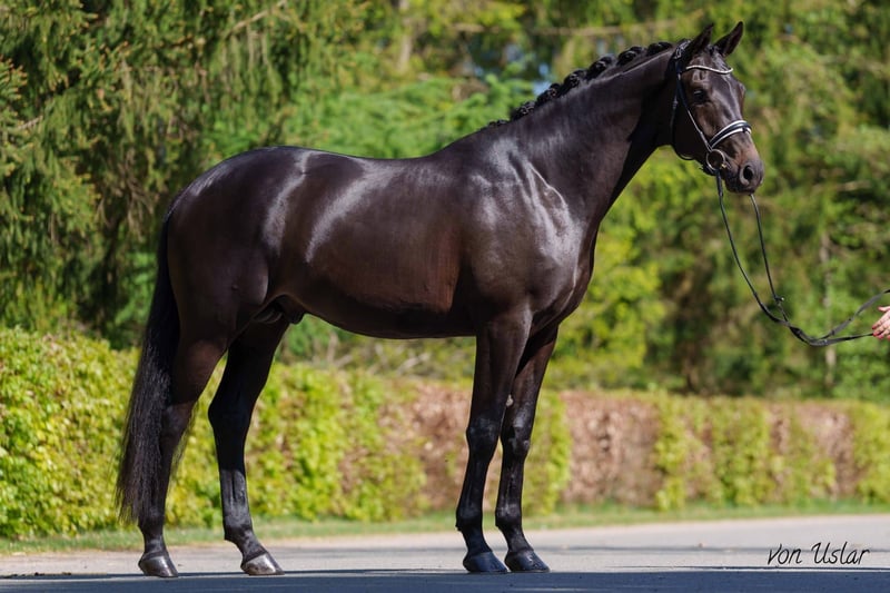 TYPBRILLIANZ TRIFFT PERFORMANCE - GEKÖRTER TRAKEHNER DECKHENGST (HB1) DER LEHRBUCHMÄSSIGE DIE IDEALE DER TRAKEHNER REINZUCHT VERKÖRPERT Zum Verkauf steht in Vertretung des Besitzers, dieser 172cm großer, dunkelbraune, 4-jährige, gekörte & leistungsgeprüfte (50-Tage / HB1) traklehner Bewegungskünstler. Er stammt ab von DAMERON aus ein BUDDENBROCK x Caro As Mutter und sein Pedigree lässt großes für die trakehner Zucht und den trakehner Sport erhoffen. Er steht im Deckeinsatz, kann aber auch vom Käufer gelegt werden. Nomen est Omen "CURRICULUM" (=Lehrbuch) hier ist der Name Programm - Ein Trakehner der lehrbuchmäßig jene Attribute verkörpert, die die Trakehner Reizucht zur edelsten der Welt gemacht haben. Er ist nicht nur Talentiert, sondern eine wahre Attraktion für Kenner, die Adel, Härte und Intelligenz in einem Dressurnachwuchspferd suchen. LEHRBUCHGENETIK: "CURRICULUM´S" Pedigree ist ein Statement für züchterische Weitsicht. Über seinen Vater DAMERON und den Muttervater & Elitehengst BUDDENBROCK ist in Linienzucht höchste Rittigkeit und ein Interieur aus Gold genetisch fixiert. Mit Caro As und Lothar im fallenden Stamm ist er über Generationen auf Leistungsfähigkeit, stabiles Fundament und Trockenheit abgesichert. ADEL & TYP: Sein Gesicht mit großem, intelligenten Auge und seine maskulinier Ausstrahlung verkörpern Lehrbuchmäßig den Trakehner Adel und ist die optische Attraktion auf jedem Parkett. INTELLIGENZ & CHARAKTER: "CURRICULUM" ist ein Musterschüler. Mit schneller Auffassungsgabe und unerschütterlicher Loyalität ist er der Ideale Partner für den gehobenen Dressursport. Sein sympatischer Charakter besticht durch absolut Vorsicht und Zärtlichkeit. Ihn kann man Bedenkenlos von einem Kleinkind in der Box Putzen lassen. Er behält übersicht und liebevolle Anhänglichkeit. ATHLETIK: Er ist ein Lehrbuch-Schüler, der mit schneller Auffassungsgabe, abgeklärtheit, Leistungsbereitschaft und toller Mechanik zukünftig im Viereck überzeugen wird. Mit stabilem Fundament, guter Winkelung und ansprechendem Seitenbild kann er die reiterlichen Hilfen bereits gut annehmen und umsetzen. Er ist seid dem Einreiten im professionellem Beritt und befindet sich auf Dressurpferde A Niveau und ist bereit für seine ersten Turnierauftritte. Bei der HLP zeigte er sich sowohl beim Stationsreiter im Vierek und im Spring Parcour rittig und stellte sich souverän auf den Fremdreiter ein. "CURRICULUM" ist ein hochkarätiges Sportpferd & wertvoller Verendler für die Trakehner Zucht. Die Antwort für Reiter und Züchter, die keine Kompromisse eingehen wollen. Er ist die lehrbuchmäßige Verkörperung der Trakehner Zucht. Edel, hart und rittig. Ein Hengst der hält, was sein Name verspricht. Es liegt ein aktueller, guter klinischer und röntgenologischer (Standard + Hals + Rücken) Tüv vor. "CURRICULUM" könnte nach dem Kauf auch gerne bei uns in professionellem Beritt zur weiteren Förderung und Turniervorstellung verbleiben.