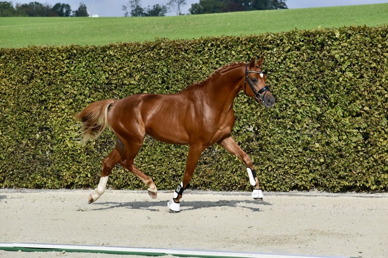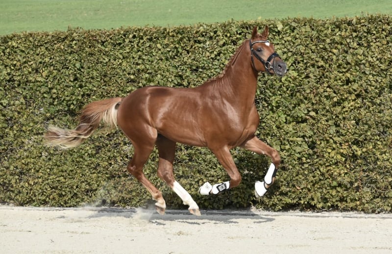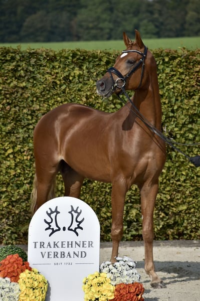 Camar Bahrain, one of the darlings of the 61st Trakehner Stallion Market. Licensed and awarded the prize of the Chamber of Agriculture for the best in S.-H. bred stallion. In addition to his beautiful type, he was praised for his good basic gaits and his friendly, honest nature. At the time, his father was the celebrated licensing winner of the VZAP in Luhmühlen and in 2019 National Reserve Champion in Aachen. He has already produced a daughter in the GP program of the Trakehner Association with Camar Qinea ox and a stallion performance test winner with Camar Qbinec ox. Bahrain's dam Barani is the premium mare of the federation from the best dressage lines with good SLP and placings in RPf and DPf A. She has already produced an auction foal with Boulevard v. Gabon. Camar Bahrain will be set up for his first breeding season at the stallion station Geling in Gowens, please contact Mr. Geling- www.hengststation-geling.de