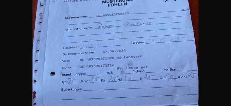Typvolles-menschenbezogenes Trakehner Hengstfohlen ( *7.5.25)aus der TAPIAU von HIRTENSTERN mit bester Veranlagung in SPR,DR und VS . Das Fohlen entwickelt sich bestens in 24-Stunden-Weide-Herden-haltung. Platz vor Preis (VB) Tel.0173 9405372