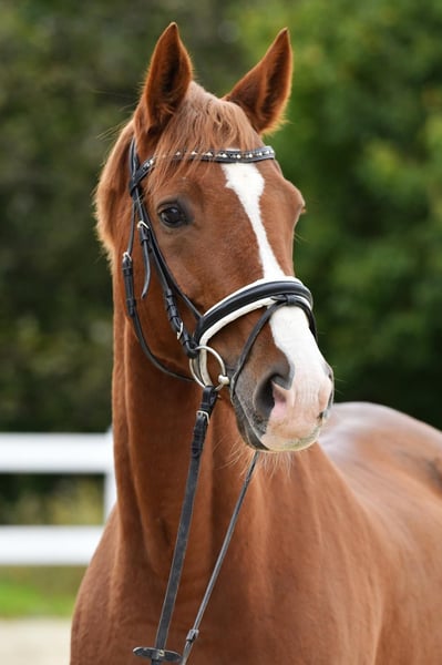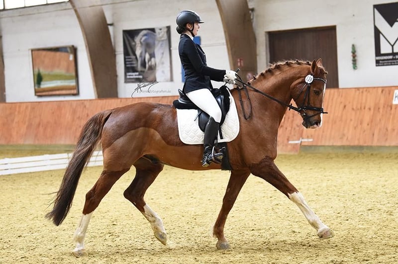 Robinson – Reliable partner with a fun factor. Robinson has been in our possession for three years. We acquired him directly from the breeder – well-trained, but still without competition experience. Since then, he has proven to be a reliable, balanced partner who always provides security to his riders. He has won multiple E-level dressage competitions, placed several times in A* and A** dressage competitions, and has already been successfully presented in L-level dressage competitions twice (each time as first reserve, just missing out on placement). He always shows readiness to perform, strong nerves, and motivation. In handling, Robinson is absolutely uncomplicated: he has no vices, is very well-behaved, and is friendly to other horses and people in daily interactions. Especially with inexperienced riders, he demonstrates patience and calmness. He masters new situations confidently, and he is a true pleasure to ride in the field. A pre-purchase examination was conducted three years ago.