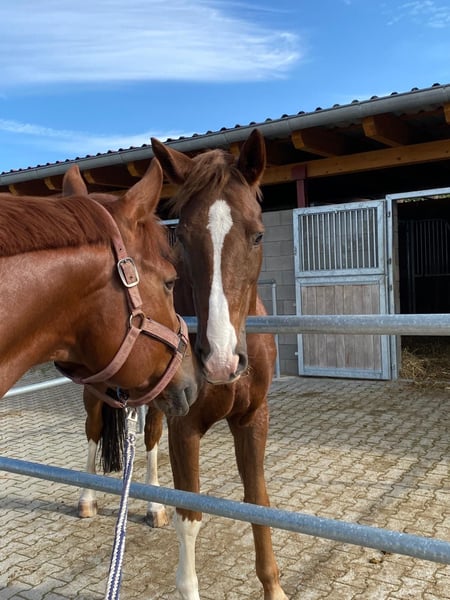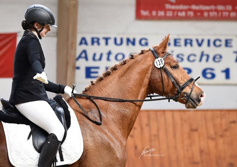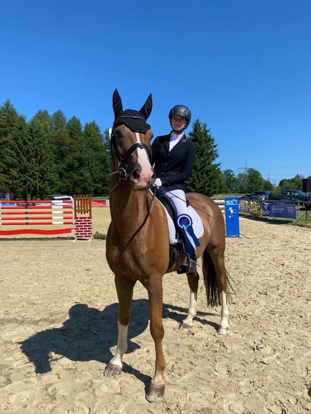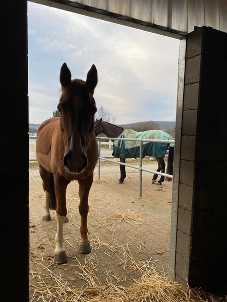 Robinson – Partner affidabile con fattore divertimento. Robinson è in nostro possesso da tre anni. Lo abbiamo preso direttamente dall'allevatore e lo abbiamo addestrato bene. Da allora si è dimostrato un partner affidabile e equilibrato, che offre sempre sicurezza ai suoi cavalieri. Ha vinto diverse gare di dressage E, è stato più volte piazzato in dressage A* e A** ed è già stato presentato con successo due volte in dressage L (in entrambe le occasioni come prima riserva, appena fuori dalla classifica). Mostra sempre prontezza, forza nervosa e motivazione. Nel maneggio, Robinson è assolutamente semplice: non ha vizi, è molto tranquillo e nel quotidiano è amichevole con altri cavalli e persone. In particolare, dimostra pazienza e calma con i cavalieri inesperti. Affronta nuove situazioni con sicurezza e anche nel terreno è un vero piacere. Un esame pre-acquisto è stato effettuato tre anni fa.
