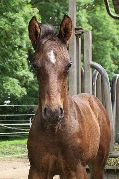 Beautifully built athlete with top character. A foal that knows how to please with its appearance and type and is equipped with three good basic gaits. Premium foal, rated with 55.5 points. Also of interest to stallion breeders. Sire Lossow - known for top-class foals. From his offspring, Räuberfürst (out of Räuberliebe by Finley M) First Sight (out of Fünflinden by Hibiskus) and his full brother First Impression as well as Elanolos (out of Elisa AA by Esteban xx) are still fondly remembered from the 2021 licensing. Lossow's undoubtedly most successful offspring is Isselhook's First Sight TSF, born in 2014 and discovered by Inge Weißkirchen: under Sophie Leube, he was Bundeschampion as a five-year-old, Trakehner Eventing Champion as a six-year-old and placed in the final at the World Championships for Young Eventing Horses. After his sale to US rider Janine Shoffner, Alex Green Kerby rode him to the United States Eventing Association's "Stallion of the Year" award in 2021. Olympic rider Doug Payne is now in the saddle on the bay.