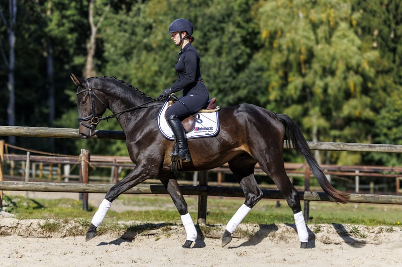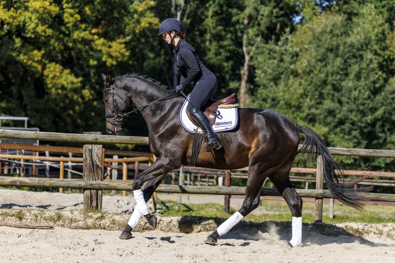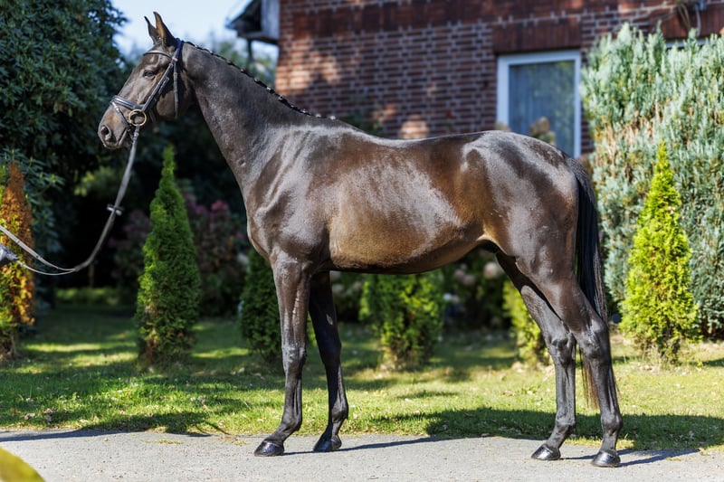 Unser Clausi ist ein bildschöner, typvoller dreijähriger Trakehner Wallach, der nicht nur mit seinem eleganten Exterieur überzeugt. Er punktet mit seinen drei hervorragenden Grundgangarten und seiner enormen Sportlichkeit. Er ist intelligent und leistungsbereit und macht immer gerne mit. Dazu hat er einen absolut liebenswerten Charakter. Clausi wurde in einem erfahrenen und erfolgreichen Ausbildungs- und Turnierbetrieb gerade schonend angeritten und absolviert dabei alle Aufgaben mit großer Gelassenheit. Mit seinem Talent und seiner Einstellung bringt er alles mit, um sich zu einem hervorragenden Sportpferd für Dressur oder Vielseitigkeit zu entwickeln.