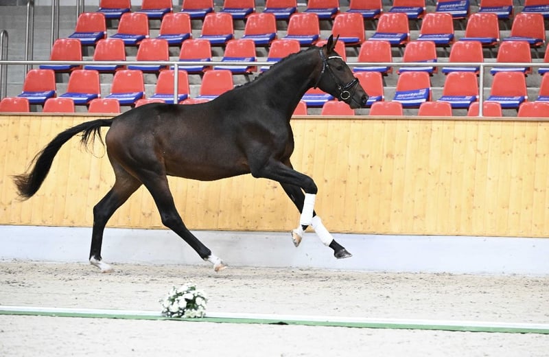 Duży, masywny ogier młodzieńczy Trakehner (2,5 roku) o imponującej prezencji i sportowych perspektywach. Obecnie ma około 173 cm w kłębie. Ten młody ogier zachwyca elastycznymi podstawowymi chody, pełnymi dynamizmu, rytmu i naturalnej równowagi. Już delikatnie lonżowany i chętnie skaczący przez przeszkody – zawsze czujny, uczciwy i z dużą orientacją. Matka Caitano, St.Pr.u.Pr.St. Chica od Herbstbach – Germanicus Rex, jest na etapie nadawania tytułu Elitarnej Klaczy Trakehner Verband. W 2014 roku zdobyła 1b nagrodę na krajowym pokazie klaczy skokowych oraz była rezerwową zwyciężczynią i najlepszą klaczą skokową w swojej kategorii. Jego ojciec Santo Scuro, już w wieku pięciu lat – jako najmłodszy ogier – został mianowany kandydatem do tytułu Elitarnego w Trakehner Verband. Wyróżnia się ujeżdżeniową wszechstronnością, mocnym charakterem, poprawną budową i doskonałym stanem zdrowia. W Stadl-Paura zdał 50-dniowy test z wyróżnieniem, uzyskując łącznie ocenę 8,48 jako najlepszy trzyletni ogier w swojej grupie. Szczególnie warto podkreślić jego oceny w ujeżdżeniu i ruchu (po 9,30), które podkreślają jego wyjątkowy charakter, wysoką chęć do pracy i predyspozycje sportowe. Na co dzień Caitano jest przyjazny, czuły i bardzo łatwy w obsłudze. Jest jasny w głowie, odważny i niezawodny, z doskonałym wychowaniem i zaufaniem do człowieka. Wychowany w zdrowych, odpowiednich warunkach, z codziennym wybiegiem i troskliwą opieką. Regularnie szczepiony, odrobaczany i prezentowany u kowala. Wyjątkowo sympatyczny młody ogier z doskonałymi predyspozycjami na przyszłość – prawdziwy partner na całe życie! Caitano z pewnością będzie kandydatem do wielkiego ringów. Dzięki swojej dużej galopadzie i dobrym skokom możemy go również bardzo dobrze wyobrazić w konkurencjach wszechstronnych. Przewiduje się, że Caitano zostanie wykastrowany na początku listopada. Zapraszamy na nasz profil na Instagramie Trakehnerhof_hegelerwald: https://www.instagram.com/trakehnerhof_hegelerwald?igsh=YXJtdHE4dndjMmU%3D&utm_source=qr i przekonaj się, jak wyglądał jego rozwój.
