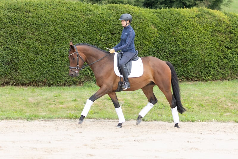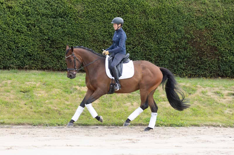 The connection of the Elmarshäuser founding sire INTERCONTI and the S-dressage successful Niagara is a perfect match: Noble and typy with an excellent character, always friendly and with an unshakeable coolness – this is our Nachtidol. He possesses three very good basic gaits. His walk is particularly ground-covering, the trot is regulated and rhythmic. The canter is confidently sprung. Nachtidol is clearly double-bred. He demonstrates very good free jumping and is familiar with cavaletti work. In the field, he is fearless and calm. Due to his good girth depth and strong foundation, he also accommodates a larger rider well. Nachtidol is suitable for young riders, as he is self-assured and has a very lovable character. His one-year-older full sister Nachglocke is double premium awarded, and his full brother Nachtmond, born in 2022, is licensed. The mother Nachteule recently produced the second most expensive foal at the auction in Münster with Nachtdrossel.