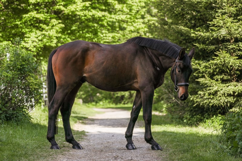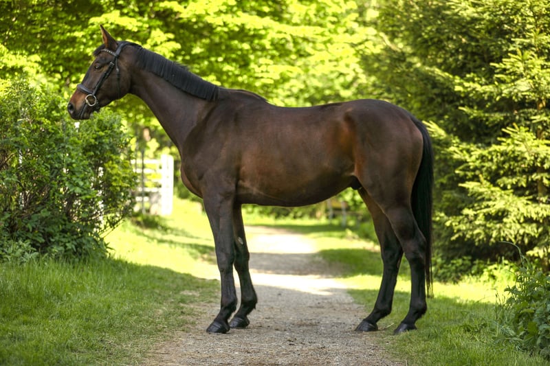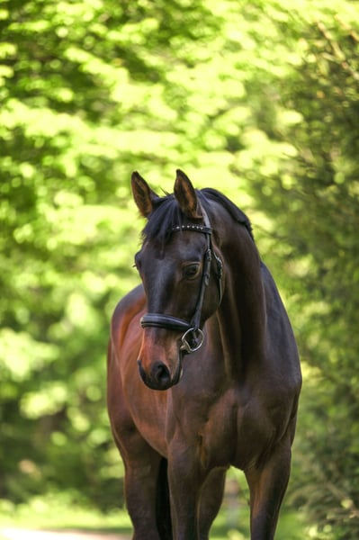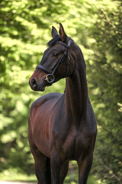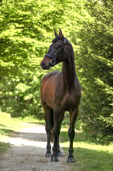 Abby was gently backed in the terrain at the end of her 3-year-old year and, age-appropriately, was placed in a paddock with peers over the winter to grow and play. Since May, she has been back in work and consistently shows her best side. Very interesting for eventing and show jumping or for an ambitious leisure rider/hunt rider who loves long rides. Abby handles all tasks presented to her very calmly and confidently for her age. Her lineage from Abercrombi leaves nothing to be desired. Her father, United Affair, was the reserve champion of his licensing and is genetically secured in all disciplines through Herbstkönig and Sixtus. Her mother, St.Pr. & Pr.St. Angelina Jolie, already made waves at a young age - at 3 years old, she won her mare registration, at 4 years old, she completed her SLP and was successfully presented in Dr.Pf. age-appropriately before switching to breeding. She consistently produced premium and championship foals. She is currently in training in Wertach in the Allgäu, and you can meet Abby there at any time.