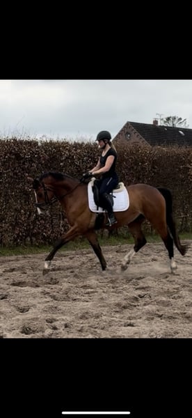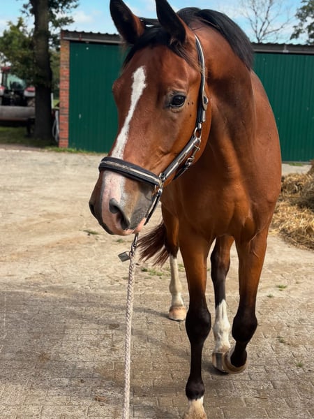 Traumhafter 4-jähriger Trakehner Wallach mit bestem Blut Dieser junge Wallach vereint alles, was man sich von einem modernen Sport- und Freizeitpartner wünscht: Charme, Rittigkeit, beste Abstammung und einen klaren Kopf. Steckbrief • Rasse: Trakehner • Alter: 4 Jahre • Geschlecht: Wallach • Vater: Perpignan Noir • Muttervater: Blue Hors Hertug ⸻ ✨ Abstammung mit Perspektive • Perpignan Noir begeistert mit Leichtfüßigkeit, Dynamik und einem klaren Talent für den gehobenen Sport. Er gilt als einer der Hoffnungsträger der Trakehner Zucht und überzeugt durch Ausstrahlung und Rittigkeit. Perpignan Noir wurde 2015 bei der Trakehner Hengstmarkt-Auktion in Neumünster zum Spitzenpreis verkauft – **für 340.000 Euro. • Blue Hors Hertug, international bis Grand Prix erfolgreich, war bekannt für Härte im Sport, ein kraftvolles Hinterbein und seinen unbedingten Arbeitswillen. Viele seiner Nachkommen sind hoch erfolgreich und zeichnen sich durch hervorragende Reiteigenschaften aus. ⸻ Ausbildung & Charakter • Seit Oktober unter dem Sattel, danach 2 Monate Pause, anschließend schonend wieder antrainiert • Bereits platziert in der Reitpferdeprüfung • Geht brav in der Gruppe ins Gelände • Zeigt sich stets ehrlich, unkompliziert und lernwillig • Vielseitig veranlagt – geeignet sowohl für Dressur als auch Springen (noch nicht speziell gefördert) ⸻ Warum ein Trakehner? Trakehner sind bekannt für Intelligenz, Sensibilität und hohe Leistungsbereitschaft. Dieser Wallach verkörpert genau diese Qualitäten: feinfühlig, motiviert und dabei immer freundlich und verlässlich im Umgang. Ein echter „Youngster zum Verlieben“ – mit allem Potenzial, um zum Traumpartner für ambitionierte Freizeitreiter wie auch den Sport zu werden. ⸻ Hinweis • Probereiten nach Absprache möglich • Zur Vermeidung von Reittourismus wird eine Gebühr von 30 € erhoben • Videos werden nicht verschickt • Bei ernsthaftem Interesse: Besichtigung jederzeit nach Vereinbarung