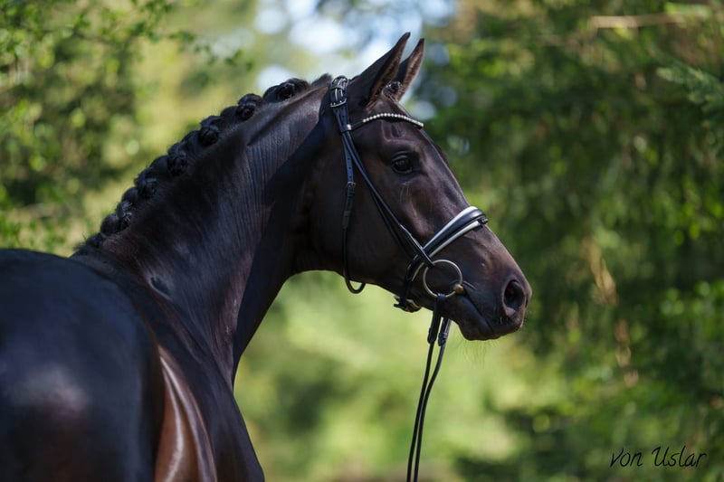 TYPICAL BRILLIANCE MEETS PERFORMANCE – APPROVED TRAKENNER STUD FARRIER (HB1) EMBODYING THE IDEAL OF TRAKENNER BREEDING ACCORDING TO THE MANUAL On behalf of the owner, we are offering a 172 cm tall, dark bay, 4-year-old approved and performance-tested (50-day / HB1) Trakehner movement artist for sale. He is sired by DAMERON out of a BUDDENBROCK x Caro As dam, and his pedigree promises great potential for Trakehner breeding and sport. He is currently in breeding use but can also be gelded upon request. Nomen est Omen – "CURRICULUM" (meaning "manual" or "textbook") lives up to his name – a Trakehner that exemplifies the attributes that have made the Trakehner breed the most noble in the world. Not only talented but also a true attraction for connoisseurs seeking nobility, strength, and intelligence in a dressage prospect. GENETICS: "CURRICULUM'S" pedigree is a statement of breeding foresight. Through his sire DAMERON and his dam’s sire & elite stallion BUDDENBROCK, he inherits top-level rideability and an interior of gold, fixed through line-breeding. With Caro As and Lothar in his lineage, he is genetically secured across generations for performance, a solid foundation, and refinement. NOBILITY & TYPE: His face, with large, intelligent eyes, and his masculine presence embody textbook Trakehner nobility and are a visual highlight in every arena. INTELLIGENCE & CHARACTER: "CURRICULUM" is a model student. With quick comprehension and unwavering loyalty, he is the ideal partner for high-level dressage. His charming character impresses with absolute caution and tenderness. He can be confidently groomed by a small child in the stable. He remains calm and shows loving attachment. ATHLETICISM: He is a textbook learner, demonstrating quick understanding, composure, willingness to perform, and excellent mechanics that will impress in the competition ring. With a solid foundation, good angulation, and an appealing side profile, he already responds well to rider aids. Since starting under professional saddle, he has been trained at Dressage Horse Level A and is ready for his first competitions. During his HLP, he performed confidently both in the arena and over jumps, adapting smoothly to unfamiliar riders. "CURRICULUM" is a top-class sport horse and a valuable breeding stallion for Trakehner breeding. The perfect answer for riders and breeders who refuse to compromise. He is the textbook embodiment of Trakehner breeding: noble, strong, and rideable. A stallion that delivers on his name. A current, comprehensive clinical and radiological examination (standard + neck + back) is available. "CURRICULUM" can also, after purchase, remain in our professional training program for further development and competition presentation.