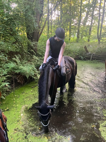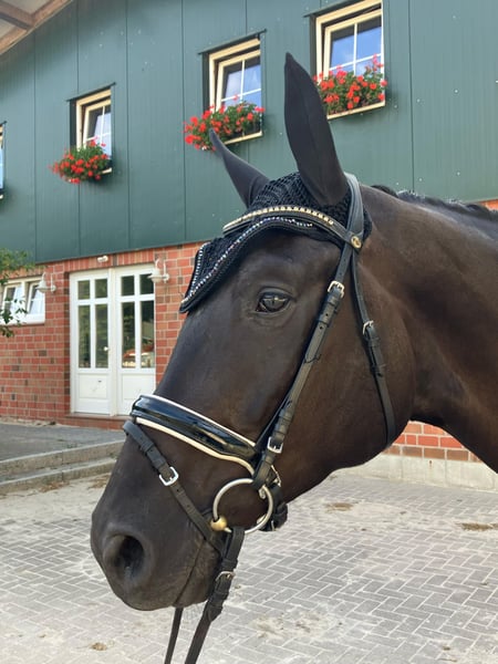 Ganzschwarz – hier ist der Name Programm. Dieser imposante, großrahmige, vierjährige Wallach misst stolze 174 cm und beeindruckt mit seinem tiefschwarzen Fell ganz ohne Abzeichen. Für sein junges Alter zeigt er sich außergewöhnlich brav und unkompliziert. Er ist leicht zu reiten, reagiert fein auf Hilfen und macht bei allem begeistert mit. Ob im Viereck, auf dem Springplatz oder im Gelände – Ganzschwarz ist ein verlässlicher Partner, der sowohl alleine als auch in der Gruppe sicher und gelassen unterwegs ist. Auch landwirtschaftliche Großmaschinen, Hunde, Hühner oder spielende Kinder bringen ihn nicht aus der Ruhe. Im Umgang ist er ebenso angenehm: Er ist verlade- und schmiedefromm, kennt den Tierarzt und zeigt sich auch im Alltag stets freundlich und kooperativ. Ganschwarz ist ein echter Allrounder, der sowohl für den ambitionierten Freizeitreiter als auch für den Einstieg in den leichten Sport geeignet ist. Menschenbezogen, lernwillig und mit einer ruhigen Grundeinstellung ausgestattet, bietet er beste Voraussetzungen für viele gemeinsame Jahre. Er ist regelmäßig geimpft, entwurmt und tierärztlich versorgt. Weitere Informationen zu seiner Ausbildung und seinem Gesundheitszustand sende ich auf Anfrage gerne zu. Besichtigungen und Probereiten sind nach Absprache möglich, der Preis ist verhandelbar. Anfragen bitte nicht per Mail, sondern möglichst per WhatsApp oder telefonisch unter folgender Nummer: +49 160 90213671.