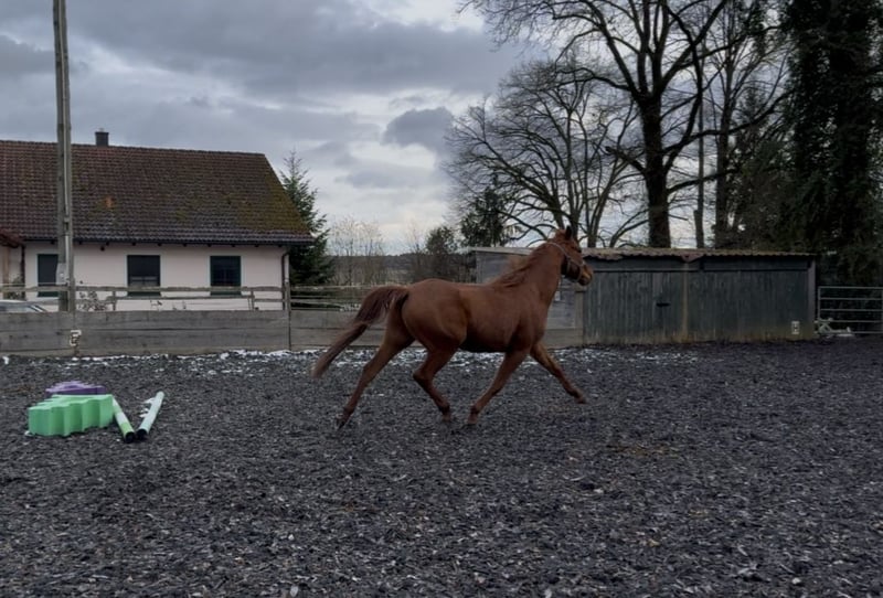 Preussenstokz: Nome di battesimo Percy È un elegante, raffinato e molto socievole cavallo Trakehner, con un pedigree fuori dal comune. (documenti completi e premiato come puledro) È tranquillo nel maneggio (condurre, ferratura, visita veterinaria), estremamente affettuoso con le persone, ma possiede anche molto temperamento e un grande desiderio di movimento. Tuttavia, non è adatto a principianti e richiede mani esperte. Attualmente è in fase di lavoro sotto la sella da circa tre mesi. È sempre pronto a divertirsi. L’altezza finale sarà presumibilmente intorno a 1,65-1,67 m. Da ottobre è stallone e sta vivendo in paddock. Attualmente viene montato regolarmente. Già da puledro si presentava chiaramente come un cavallo di tipo stallone, ed è stato consigliato per una crescita come stallone in addestramento. Pedigree assolutamente fuori dai canoni! Padre: Mount Etna xx (da corsa, con alti punteggi nel salto e nell’equitazione) Madre: Passarella (candidata all’elite), puledra premiata e con successi sportivi, con un portamento nobile! Più volte campionessa austriaca in dressage fino alla classe S (disponibile anche presso il nostro allevamento e visibile di persona) Come anche sua madre, possiede una base eccellente con grandi zoccoli, è intelligente e molto motivato. Ha un grande desiderio di movimento ed è un cavallo coraggioso. Come i suoi genitori, mostra talento per tutte le discipline o, in alternativa, può essere un ambizioso cavallo da leisure per ogni settore. Gait elastici, sopra la media, con molta spinta da dietro e un naturale desiderio di apprendere, lo rendono un giovane cavallo molto interessante. Percy cresce nel nostro allevamento privato, curato e amato, con molto contatto con le persone. Da noi viene pulito due volte al giorno (senza paglia), riceve due pasti di mangime (Lexa Bio, Equistro Mineralfutter), foraggio a volontà 24/7, viene ferrato ogni otto settimane e dewormato quattro volte all’anno. Poniamo la massima attenzione a un’ottima crescita, in piccoli gruppi. Desideriamo per Percy una casa meravigliosa, idealmente per tutta la vita. Tel. 0162 6976482