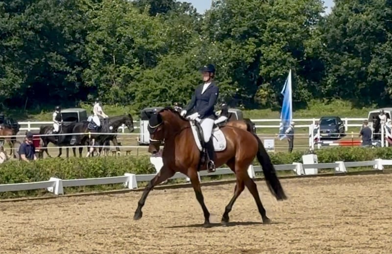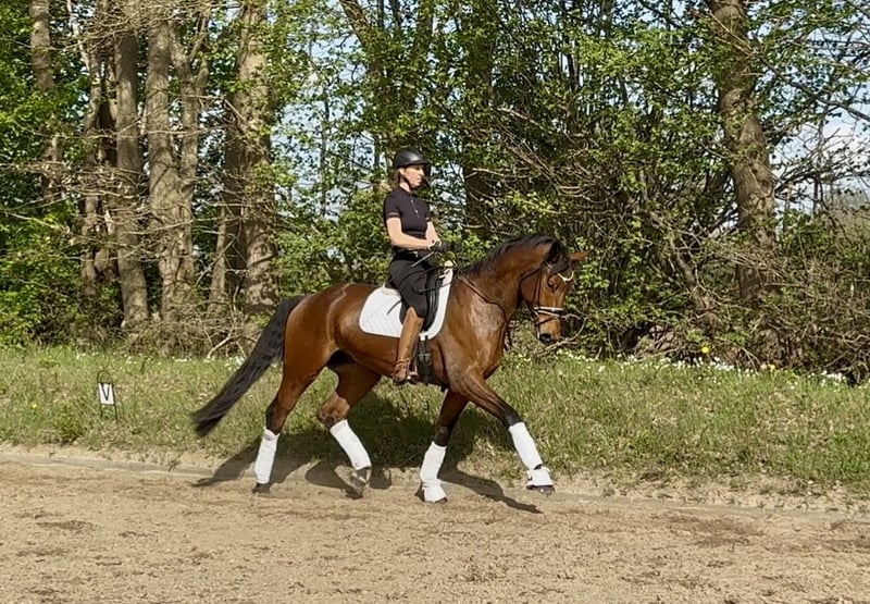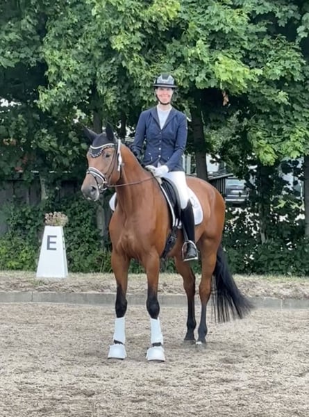 Dontucky impresses with his excellent rideability, good gaits, and wonderful temperament. He is always motivated and eager to please his rider, whether in the arena, on trail rides, or in handling. He has completed all L-level dressage tests and shows talent in lateral movements. As a foal, he was Reserve Champion and received 9s for type and trot. He remains in the possession of his breeder and has been trained in a versatile and gentle manner. If you are looking for a well-trained horse with an outstanding character and all the sporting potential, you should get to know Dontucky. He will only be placed in the best hands that can provide him with a horse-friendly life.