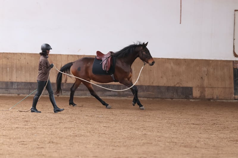 Grafenstart ist ein doppelt-veranlagter 7 jähriger Trakehner-Wallach ( Lossow-Sohn). Er ist im August 2018 geboren. Aktuell lebt er in einer gemischten Herde im Offenstall, wo er sich sehr wohl fühlt. In der Herde zeigt er sich sehr gut verträglich. Er ist seit vier Jahren in meinem Besitz. Ich habe ihn schonend angeritten (erst mit 4,5 Jahren!) und ihm viel Zeit gegeben. Grafenstart ist ein mutiger Jungwallach, der sehr klar im Kopf ist. Im täglichen Umgang ist er absolut brav und respektvoll, ein richtiger Goldschatz. Auf dem Hof ist er stets gelassen unterwegs. Beim Tierarzt und Hufbearbeiter ist er entspannt und kooperativ. Er läuft barhuf und hat sehr stabile Hufe. Unangebunden stehen bleiben, Traktoren, Hunde, Kinder oder Unwetter, einparken an der Aufstiegshilfe, alles kein Problem für ihn. Grafenstart steigt mühelos in den Anhänger, auch weite Fahrten meistert er entspannt. Er war mit mir an vielen Kursen dabei, in fremden Umgebungen verhält er sich wie ein Profi. Wer einen mutigen, selbstbewussten Trakehner mit dem typischen Köpfchen sucht, ist bei ihm richtig. Er kennt Bodenarbeit, Handarbeit und Freiarbeit. Er wurde sehr vielfältig vom Boden aus gearbeitet und ist top erzogen. Aus privaten Gründen ( Ich hatte 2024 einen Unfall, danach Schwangerschaft, jetzt Baby ) wurde er dressurlich leider noch nicht weiter gefördert. Gerne mehr dazu am Telefon. Er ist absolut unverbraucht. Grafenstart ist eher der gemütliche Typ ( was ihn perfekt für viele Ausflüge, als Familienpferd und Allrounder macht). Wenn man ihn mit Ruhe und Geduld, sowie dem nötigen Selbstvertrauen motiviert, arbeitet er zuverlässig mit und zeigt sein volles Potenzial. Wenn man selbst unsicher ist, wird er introvertiert und verliert seine Dynamik. Er hat keinerlei Unarten wie steigen, buckeln, durchgehen, beißen oder treten. Eine AKU wurde in 2021 gemacht und war einwandfrei, kann auf Wunsch wiederholt werden. Die Röntgenbilder liegen vor und können gerne zugesandt werden. Grafenstart wurde regelmäßig der Osteopathin und dem Zahnarzt vorgestellt. Er ist kerngesund. Ein negativer PSSM1 und Mim2 Test liegen vor. Ich habe ihn roh direkt von der Züchterin gekauft, wo er im Herdenverband aufwachsen durfte. Robusthaltung ist seine gewohnte Haltungsform, mit welcher er auch ausgezeichnet zurecht kommt. Er wurde von mir eingeritten ( ich bin selbst Horsemanship Trainerin) und läuft entspannt in allen drei Gangarten auf dem Platz und in der Halle, das auch auf unbekannten Höfen, am langen und aufgenommen Zügel. Er zeichnet sich durch drei tolle GGA aus, die weiter gefördert werden wollen. Aktuell steht er leider nicht im Training, er muss also sicherlich auftrainiert werden und das ein oder andere Kilo verlieren. Leider fehlen mir die Kapazitäten ihm seinen zukünftigen Besitzer*in in seiner vollen Pracht zu präsentieren. Wäre es mir möglich, würde ich ihn vermutlich auch nicht verkaufen ;-) Aber auch jetzt verzeiht er mir die Stehtage mühelos. Er steht nun in den Startlöchern für seine sportliche Aufgabe. Im Gelände läuft er in der Gruppe und als Handpferd, was er souverän meistert. Er ist absolut straßenverkehrssicher. Grafenstart wünscht sich einen Menschen mit Erfahrung und einer liebevollen und gleichzeitig konsequenten Führung und eine sportlichen Aufgabe, für die er nun bereit ist. Er ist wirklich ausgesprochen menschenbezogen. Geduldig wartet er am Tor auf seinen Menschen. Er hat noch nie Ausbinder gesehen. Er wurde mit Knotenhalfter oder Schenkeltrense geritten. Sein Stockmaß beträgt 168m. Er wird nur in beste und wertschätzende Hände abgegeben. Grafenstart sucht den Menschen zum DURCHSTARTEN. Auf Wunsch können ein neuer Amerigo Dressursattel in braun und passende Hufschuhe zusätzlich erworben werden. Weitere Fotos und Videos, sowie die Röntgenbilder sehr gerne auf Anfrage.