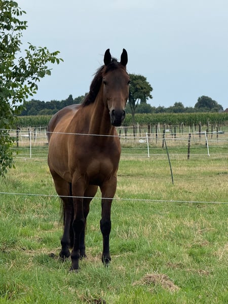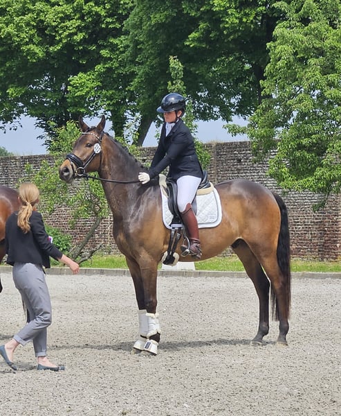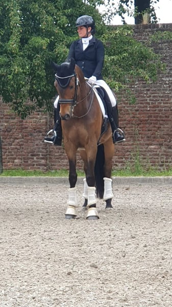 Anfragen bitte via WhatsApp u nicht via Ehorses Nach langem Überlegen und vielen Tränen, habe ich mich dazu entschieden mein Herzenspferd Tommy in gute Hände abzugeben. Traumtänzer Tommy ist ein 9 jähriger Trakehner Wallach 1,71 m und seitdem er 3 ist in meinem Besitz. Ich habe ihn selber ausgebildet und von Dressurpferde L bis L** platziert. L* ist er sogar siegreich. Tommy ist ein sehr motiviertes, leistungsbereites Pferd. Leider hat er gesundheitliche Baustellen, wieso ich mich entschieden habe ihn aus dem Sport zu nehmen. Ich bin selber leidenschaftliche Turnierreiterin und aufgrund seiner Befunde habe ich mich schweren Herzens dazu entschieden ihn an einen Freizeitreiter abzugeben, der ihn auf andere weise weiter fördert. Tommy kennt Ausritte im Feld und im Wald, alleine und in der Gruppe. Er springt sehr gerne und kennt Handarbeit und Bodenarbeit. Aufgrund von mehreren Befunden ist er nur noch bedingt reitbar (Details gerne per PN). Ich wünsche mir für ihn ein 5* zu Hause mit einem Reiter ohne Turnierambitionen, wo Spaß mit dem Pferd im Vordergrund steht und nicht das Dressurreiten der Fokus ist. Idealerweise in einer Offenstallhaltung. Tommy ist ein typischer Trakehner. Er ist immer pro Reiter und möchte immer Arbeiten. Er steigt und bockt nicht, aber er ist auch keine Schlaftablette und deshalb nicht Anfänger geeignet. Im Umgang ist Geduld nicht seine größte Stärke. Er ist super brav beim verladen. Ich bin jede Woche ganz alleine mit ihm auswärts gefahren. Aufgrund seiner Befunde gilt absolut Platz vor Preis Wir kommen aus dem Kreis Heinsberg Probereiten ist aktuell nicht möglich, da er nach einer PRP Behandlung nur Schritt gehen darf