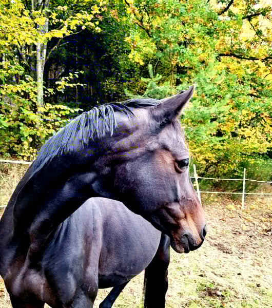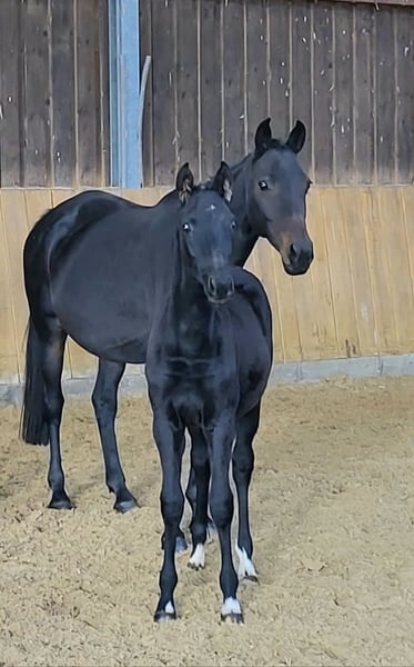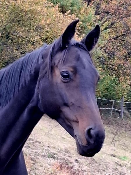 Zum Verkauf steht hier eine elegante Trakehnerstute mit hübschen Stutengesicht großen Auge und 3 guten Grundgangsrten.Sie ist sehr sensibel und menschenbezogen,was sie an Ihre Fohlen weitergibt. Vor ca. 7 Jahren habe icv die Stute vom Züchter erworben ,wo sie bereits eine gute Stutenleistungsprüfung abgelegt hat.Sie wurde von mir in der Dressur bis Kl .L und im Springen ausgebildetAuch das Springen über Geländehindernissen machte ihr viel Spaß. Sie kennt fremde Plätze und Hallen,da ich regelmäßig an Lehrgängen teilgenommen habe.Auf Turnieren wurde sie nicht vorgestellt,da ich nur ambitionierter Freizeitreiter bin.Aufgrund mehrerer Nachwuchspferden habe ich mich letztes Jahr dazu entschlossen sie in dieZucht zu nehmen.So brachte sie dieses Jahr ein tolles Stutfohlen zur Welt.In ihrer Mutterrolle zeigt sie sich in allen Bereichen sehr fürsorglich und unkompliziert und ist stets ausgeglichen.Das Fohlen ist vom gleichen Hengst und kann vor Ort mit besichtigt werden.Es steht nur nicht zum Verkauf.Ich wünsche mir für die Stute ein liebevolles aZuhause ,wo sie in ihrer Rolle als Zuchtstute noch wachsen kann,da ich ihr aus zeitlichen Gründen nicht mehr gerecht werde.Die Stute kann natürlich auch wieder geritten werden.Bei Interesse können Sie sich gerne telefonisch ab 19.00 unter der 015168592527 melden