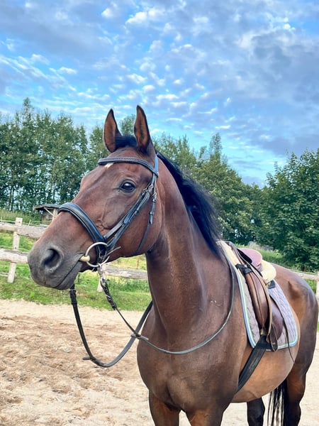 Samira sucht dringend ein neues 5 Sterne Zuhause. Sie ist eine sehr sanfte, sensible Maus, die immer gefallen möchte und offen für Neues ist. Sie benötigt einen ebenso sensiblen Reiter der die Hilfegebung beherrscht und keinen Haudegen auf dem Rücken. Sie verfügt über viel go, drei hübsche Grundgangarten und viel Interesse an der Mitarbeit. Klare und ruhige Strukturen helfen Samira Vertrauen zu gewinnen. Sie bleibt immer korrekt, keine bösen Eigenschaften beim reiten oder im Umgang. Nur einen trakenertypischen Vorwärtsdrang, der absolut händelbar ist. Sie steht bei uns nur zum Verkauf und ist zur Zeit nicht im Training.