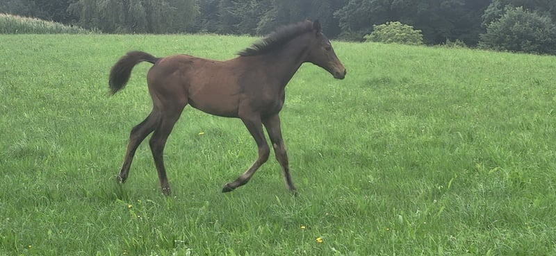 **Sales Advertisement: Trakehner Mare** Father Thoroughbred xx, Mother Halfbred Mare!!! Agile, curious, confident, no distance too far – this is how one could describe the foal. On rides, always overtaking mom and joyfully galloping with power. Or it lets mom get far ahead to then dash past her; a pleasure to watch! Certainly a foal that will make a powerful eventing or hunting horse, more suited for the more experienced rider. Willingness to perform radiates from every movement! The mother mare had a son in the licensing lot in Neumünster. You are welcome to watch the foal from horseback or from the accompanying vehicle during a ride, or also in the arena in free movement. I can send videos of rides via WhatsApp. Please feel free to contact me if you are looking for something in this direction; the "Saved Button" will not get you any further.