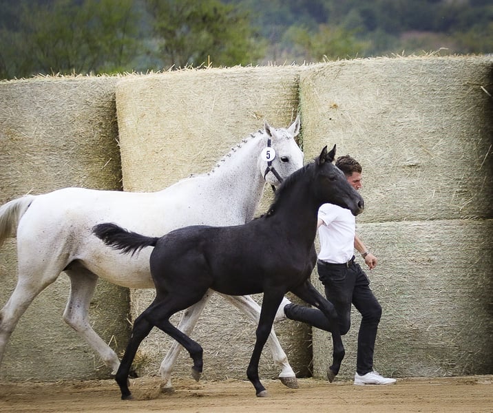 Dalton Vra AA hat mit seinem ersten Jahrgang bei uns wahrhaftig Akzente gesetzt! Er verbesserte jede einzelne Beurteilungsposition, und die Gesamtpunktzahl um ganze 3 Punkte! Ein leistungsgeprüfter Anglo-Araber, der in Dänemark sowohl in Dressur wie auch Springen Erfolge bis zur Kl. M vorweisen kann. Vater von Dalton Vra AA ist der Shagya-Araber Dartan. Diese Hengstlinie geht zurück auf den Araberhengst DAHOMAN, geboren 1846. Die Dahoman-Linie zeichnet sich durch einen starken Rahmen, hervorragende Knochen, Zähigkeit und Ausdauer aus. Seine Mutter Donna Vra AA ist eine Tochter des im Springsport hocherfolgreiche DON-CASTER AA von DORPAS AA, intl. Springen bis Klasse S** mit Dirk Schröder (u.a. 1.Platz CSI Neustadt/Dosse). DON-CASTER AA ist auch Vater von JUMEAUX RH AA (Springen in VS bis Kl. M2*) und ein mütterlicher Halbbruder zu BONAPARTE N AA, NABUCCO AA. Seine Grossmutter Piroutte Vra AA stammt von PRIMUS AA, ein Sohn des berühmten MATCHO AA (NK-LGS 578.029,-- €), dessen Nachkommen vielmals in Dressuren hocherfolgreich waren. Er ist Vater von 37 S-Dressurpferde, 8 S-Springpferde, 1 S-VS-Pferd und 7 S-Fahrpferden, hauptsächlich Hannoveraner. Prämienstutfohlen Bella Athletica (54.5 Punkte) ist ein bewegungsstarkes Stutfohlen aus einer sportlichen, fruchtbaren Stutenfamilie. Garant für Leistung und züchterisch hochinteressant aufgrund eines Pedigrees, das zur Erhaltung der benötigten Vielfalt innerhalb der genetisch immer enger werdenden Population des Trakehner Pferdes beitragen kann. Mutter Bella Luna, eine harmonische Halbblutstute verkörpert die einzige eingetragene Tochter des Wörtersee xx – Bruders Well Done xx. Mit einem GAG von 91.5 kg auf der Rennbahn hart geprüft, verzeichnet er über 43 Starts und 12 Siege mit einer Gesamtgewinnsumme von 85.000 Euro. Die leistungsgeprüfte Grossmutter (SLP Endnote 7,92) Bella Chocolotta v. Suchard ist Halbschwester zu vier - in verschiedenenen Zuchtverbänden - gekörten Hengsten. Darunter der Halbblüter Pampero v. Panchero II AA, beeindruckernder Sieger des 70 Tage Tests in Marbach und dem beim ZSAA gekörten B.B. King v. Best Before Midnight, der einen sehr guten 30 Tage Test absolviert hat und im Turniersport in VS-Prüfungen erfolgreich war. Ihre Halbschwester Belle Petitesse ist im Leistungsstutbuch des ZSAA eingetragen. Bella Chocolotta lieferte u.a. die Pr.A. Bellezigane (NMS 21/51) aus dem ersten Jahrgang des Weltmeisters der 7j. Vielseitigkeitspferde 2020, Eliteanwärter Sweetwaters Ziethen TSF und deren ebenfalls als Prämienanwärterin eingetragene ein Jahr jüngere Vollschwester Bellevue. Suchard als Vater der Grossmutter, selbst in Springen bis Klasse S erfolgreich, ist Vater der gekörten Hengste Ballisto Z, Budweisser Classic, Becket und den Vollbrüder Lossow und Lessen (GB). Die Liste seiner sporterfolgreichen Nachkommen ist lang. Er lieferte in der Trakehner, Oldenburger und Rheinischen Zucht etliche Sportler für Vielseitigkeit und Springen. Einer seiner bekanntesten Nachkommen, neben den sporterfolgreichen Hengsten Ballisto Z und Budweiser Classic, ist Finch Hatton TSF. Suchard findet man ebenfalls als Vater der E.St. Blanchette, Mutter des Blancor. Über Bella Marjell im fallenden Stamm, ebenfalls geführt im Leistungsstutbuch des ZSAA (Abt. D 10/10) führt Bella Athletica das Blut des in Mächtigkeitsspringen siegreichen Machandel, der später in Polen stationiert war. Über die Väter Bartholdy, Seeadler v. Habicht und den harten Vollblüter Nemrod xx im fallenden Stutenstamm findet man geballte Leistung auf der Basis eines polnischen Stutenstammes. Die vierte Mutter Bella Babette v. Bartholdy ist eine Vollschwester des bis Kl. M erfolgreichen Vielseitigkeitspferdes Ben Bartholdy. Stutenfamilie/mare line: O468A1 Barkarola Bei Interesse senden wir gerne weitere Fotos und Videos der Stute und des aktuellen Fohlens. Warum "Preis auf Anfrage"? Scheuen Sie sich nicht uns wegen unserer Preisvorstellung unverbindlich zu kontaktieren. Wir ziehen die persönliche Kontaktaufnahme vor und verzichten deshalb bewusst auf die Angabe einer Preiskategorie, da uns Platz und Perspektiven für unsere Pferde wichtig sind. Transport kann organisiert werden. Unsere Pferde shutteln oft zwischen Bulgarien und Deutschland, Schweiz oder Österreich. Daher sollte dieser Punkt das kleinste Hindernis darstellen. Wir verkauften bisher Pferde nach DE, CH, AT und Australien. Kundenzufriedenheit in diesem Punkt ist uns ebenfalls wichtig. Kontaktieren Sie uns gerne bei Interesse an weiteren Informationen, Videos und Fotos. Mobil +359 886 281 305 (auch WhatsApp) oder E-Mail: j_muehlethaler@yahoo.com