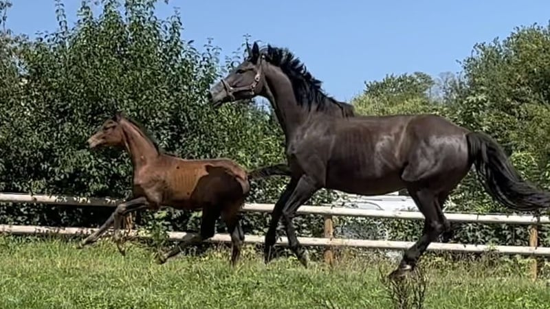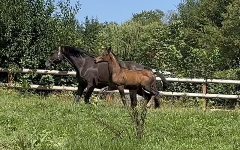 Typowa ciemnogniada klaczka, córka Karl Lagerfeld, z matką o czarno-złotym umaszczeniu, urodzona. Posiada wyrazisty typ, jest bardzo muskularna i o dużej budowie ciała, z dynamicznymi podstawowymi chodem. To oferta zarówno dla hodowcy, jak i jeźdźca sportowego, kandydatka na championaty, po wysoce udokumentowanym, sportowo ukierunkowanym rodowodzie. Ojciec, Karl Lagerfeld, przeszedł przekonującą próbę wytrzymałości z wysokimi wartościami użytkowymi. Również w konkursach skoków i ujeżdżenia zawsze kończył jako zwycięzca lub wysoko plasujący się. Jego sukcesy w konkursach ujeżdżeniowych klasy L zapewniły mu kwalifikację na Mistrzostwa Świata Młodych Koni w Verden. W wieku 4, 5 i 6 lat zakwalifikował się do Niemieckiego Mistrzostwa Młodych Koni, wielokrotnie plasując się na medalowych pozycjach. Matka klaczki również ma doskonałe pochodzenie, z licznymi znanymi reproduktorami w rodowodzie! Młoda klaczka już teraz zachwyca swoim urokiem, charyzmą i jakością ruchu! Przestronny krok i stęp z dobrym wybiciem z zad, płynne ruchy przez ciało! Do tego piękna i o dobrym charakterze, ciekawa świata i pełna życia! Uważamy, że to potomstwo Trakehnera, które kiedyś pokaże się w parkurze! Dostępne wideo na życzenie! Transport na terenie Niemiec możliwy po pokryciu kosztów, po odsadzeniu.