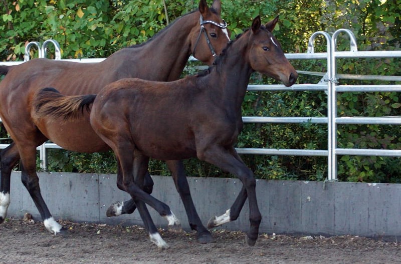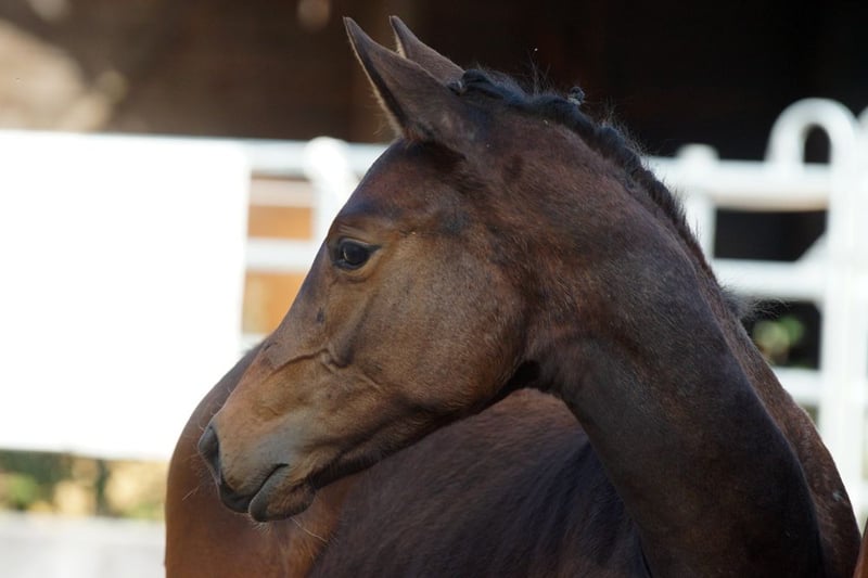 For sale is a stunning dark bay Trakehner mare, born in 2025. She impresses with her noble appearance and balanced temperament. As a versatile horse, she is ideally suited for eventing but is also perfectly capable in other disciplines. The mare boasts excellent bloodlines and promising potential. With her friendly character and robustness, she is suitable for both experienced riders and ambitious young talents. Foal evaluation 2025: Type 8.5 – Conformation 8.0 – Foundation 8.0 / Walk 8.0 – Trot 9.0 – Canter 7.5 / Overall impression 8.0 = 57.0 points She is raised appropriately in a herd on pasture throughout the year and is regularly dewormed and presented to the farrier. For further information or to arrange a viewing, please do not hesitate to contact us. We look forward to hearing from you! Additional promising young horses can be found at https://www.trakehnerhof-st-vitus.de/