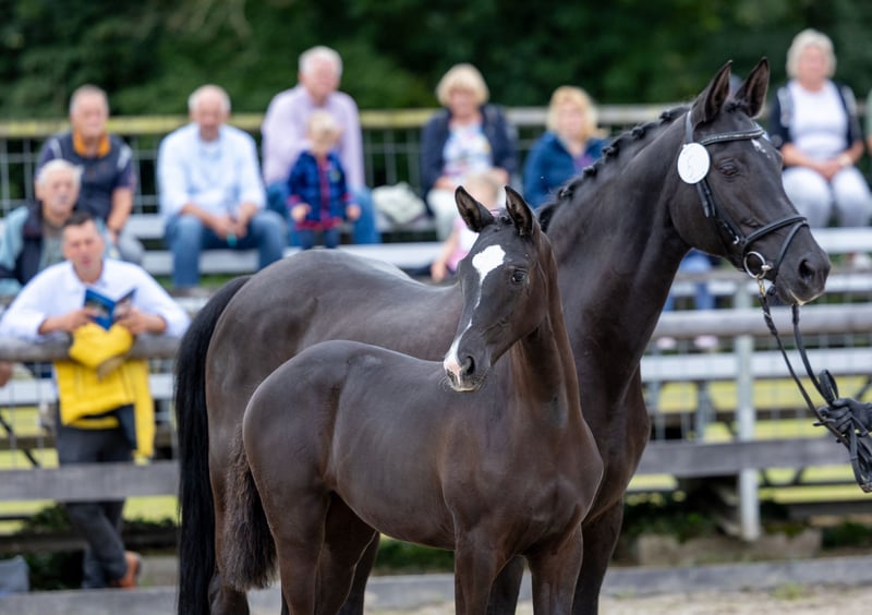 De piernas largas y elegantes, femenina y distinguida, con proporciones generosas en su cuerpo, esta hija del fascinante Hirtenstern (por Hirtentanz) se presenta con gran estilo. Además, está dotada de grandes talentos; cuando se mueve, siempre muestra una impresionante dinámica, elevándose con majestuosidad y manteniendo un ritmo inquebrantable desde el primer momento. Su carácter es equilibrado, siempre amable y confiada hacia las personas, lo que la motiva a dar lo mejor de sí misma. También por parte materna, proveniente del destacado semental Sonnenstrahl, este interesante potra es una verdadera revelación en cuanto a perspectivas deportivas.