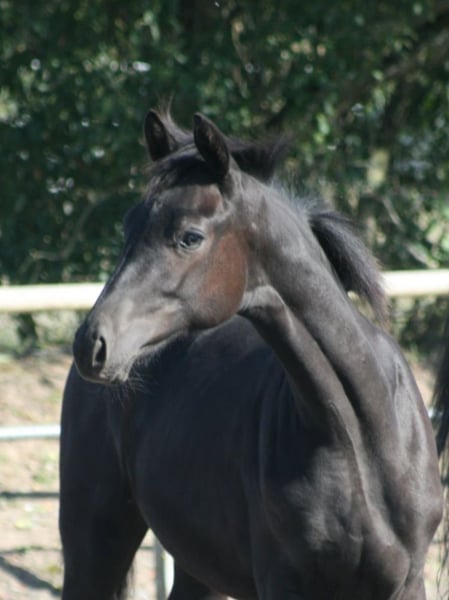 Jeune pouliche mare très typée, dotée de très bonnes allures de base.