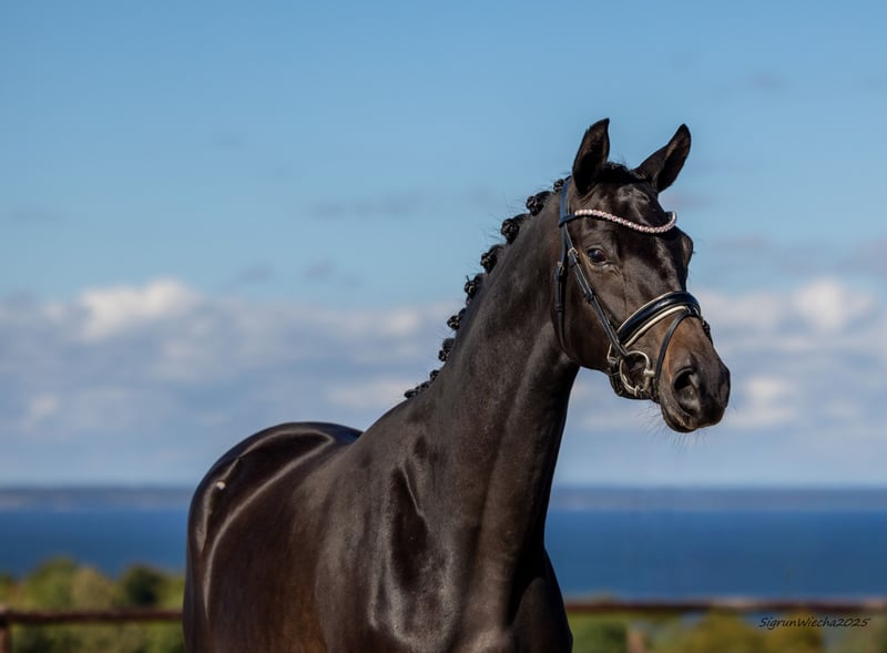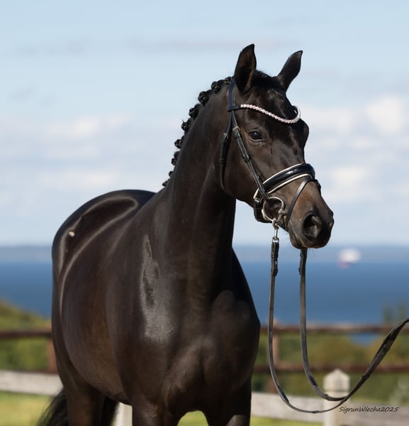 Die aktuelle Championesse der Zweijährigen der dänischen Eliteschau in Vilhelmsborg betört als eine richtige Balletteuse mit den Attitüden einer Prinzessin aus bestem Hause. Die Mutter ist eine Schwester der mit Prämie dekorierten Stuten Upsala, Uni Birknaes, Unik Birknaes und positioniert sich auch als eine der wenigen Töchter des auf der internationalen Bühne des Grand Prix gefeierten Finckenstein TSF (Rikke Svane) in strahlendem Rampenlicht. Eng verwandt mit der amtierenden baden-württembergischen Siegerfamilie der Until-Now Familie und der in CCI3*- Prüfungen erfolgreichen Uni’s Black Pearl (Eva Terpeluk). Die Stute wird anlässlich des Trakehner Hengstmarktes am 28.112025 bei einer Auktion versteigert, alle Informationen finden Sie unter: https://bid.trakehner.auction/auctions