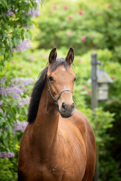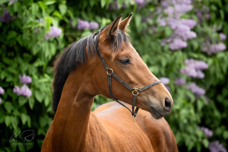 The daughter of the highly endowed sire Kenneth dances on this stage in a particularly noble, enchantingly feminine manner and in the splendor of her exquisite pedigree and has already celebrated her appearance in a similar performance at the Westphalian Foal Championships. Light as a feather in the flow of movement, flowing through the whole body, with rhythm and attitude, La Finesse celebrates her movement qualities. This Kenneth daughter is characterized by a great deal of harmony in her conformation and is well developed and happy. She is also very fond of people, always cheerful and in a good mood, which makes her a joy to live with every day! Her sire is already regarded as a celebrated sire after two crops and has delivered top auction prices. The dam is a full sister to the top mares Lilie and Lilifee, who together with their dam Loa Loa are still in office as a national champion family. They represent a top line that has produced a large number of advanced (S) level sport horses in all disciplines.