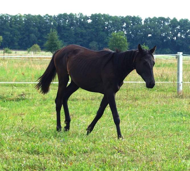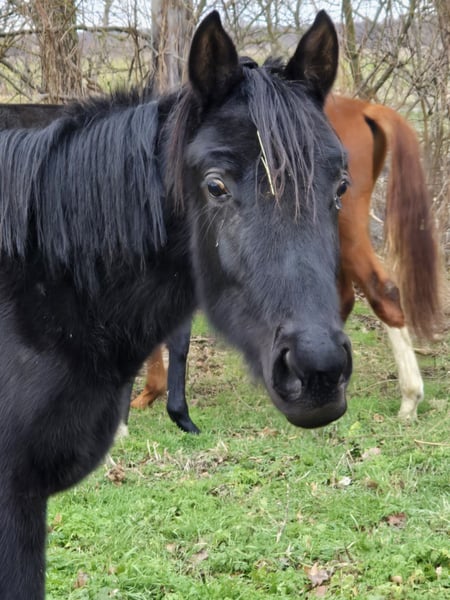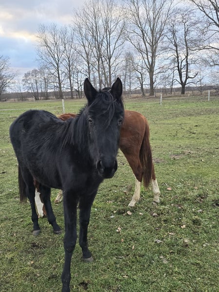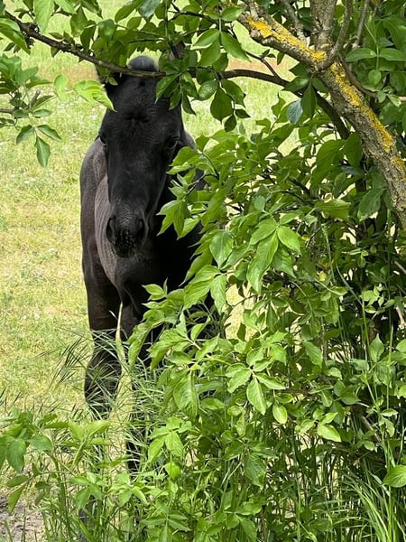 Diese hübsche Dame ist im Mai 2023 geboren und eine aufgeschlossene und neugierige Stute. Hally Gally ist korrekt und gesund. Sie wächst im Herdenverband auf. Schmiedefromm ist sie auch bereits