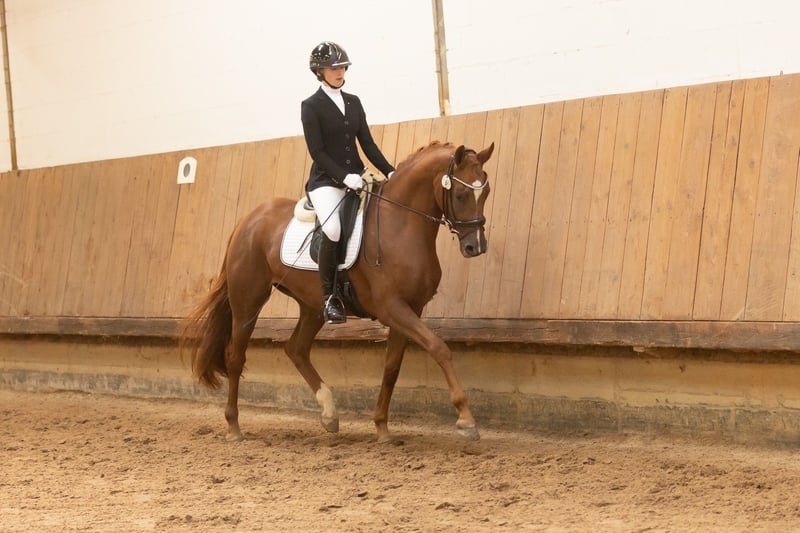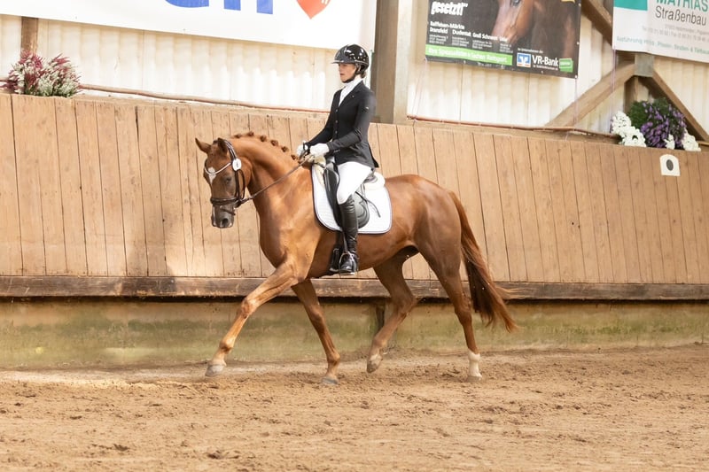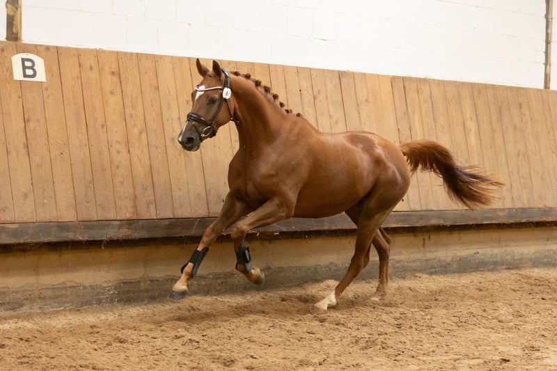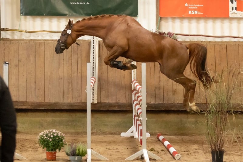 Toffifee successfully completed her mare performance test on September 21st with an overall score of 7.68. In addition to her excellent work ethic and outstanding temperament in unfamiliar surroundings under saddle, she also impressed with her great jumping ability, which was rated with a jumping-focused final score of 8.28. Thus, she is a top young horse for all disciplines. She also made a strong impression at the mare registration in May, confidently securing the reserve champion position in the top group of her age category. Toffifee stands out as one of the few daughters of the excellently bred Tantalos, both from a sporting and breeding perspective. She represents a traditional lineage that has been maintained by the same breeding establishment for many generations, making her highly interesting from a breeding standpoint.