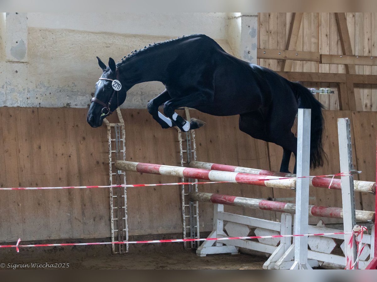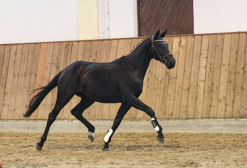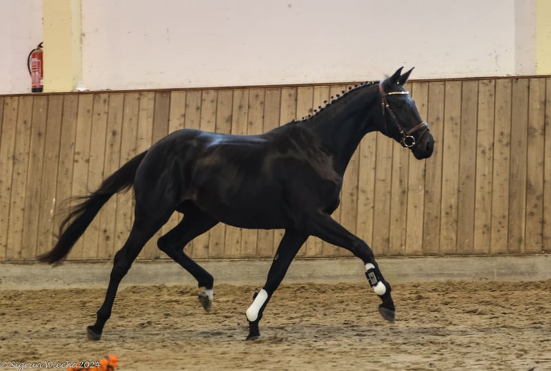 In vendita una promettente figlia di 2 anni dello stallone Finanzierungsstall Sturmpfeil, dal bellissimo nome Emelie Elbzauber. Ancora molto giovane nell'aspetto e "verde dietro le orecchie" nel senso migliore del termine, sa comunque mettersi in evidenza, con un buon movimento in tutte e tre le andature di base e una gestione molto fine e ben educata. Il padre è lo straordinario stallone di 7 anni Sturmpfeil, che si è qualificato più volte per il Bundeschampionat tedesco sotto la guida del miglior cavaliere Jérôme Robiné ed è ora molto apprezzato nelle prove di cross-country fino al livello medio e un concorrente assoluto per i compiti più elevati. Il lato della madre è seguito da Sheridan, uno stallone molto interessante non solo in termini di colore, che ha completato un notevole test di performance in Polonia ed è stato esibito con successo in competizioni di salto ostacoli fino al livello principianti. Questa cavalla di 2 anni ha un ottimo pedigree di performance, che lascia presagire una promettente carriera nell'eventing.