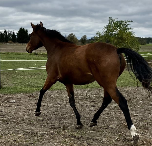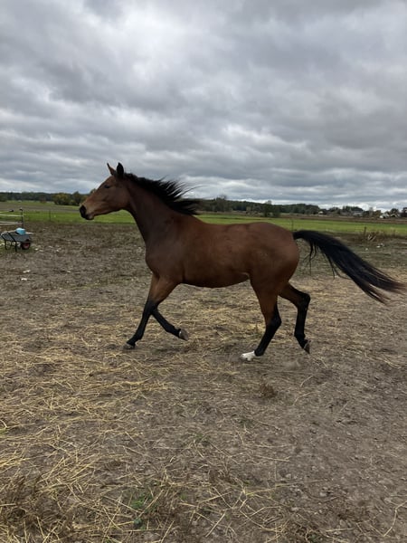 A promising Trakehner mare, born on 28.05.2022, is for sale. This young lady impresses with her elegant appearance in all three basic gaits. She already shows great talent in dressage and has the potential to develop into an outstanding sport partner. With her impeccable conformation and friendly nature, she is an interesting choice for both ambitious riders and breeders. Through her sire Instagram she has EH Schwarzgold in her pedigree and on her dam's side there are well-known sires such as Syriano, Bardolino and Kostolany. She has a very human-oriented nature, is inquisitive and immediately very curious. She has now mastered more than just the foal ABCs. She loves walks, leading and free work just as much as grooming. After all, as a foal she captivated my breeding district manager during registration and scored enough points for a premium. Last year she also showed her best side. As long as she is with me, we are working towards the central mare registration for three-year-olds next year in Moritzburg. If you are seriously interested in this enchanting Trakehner mare from a first-time breeder, I look forward to hearing from you.