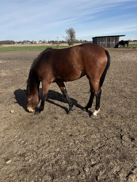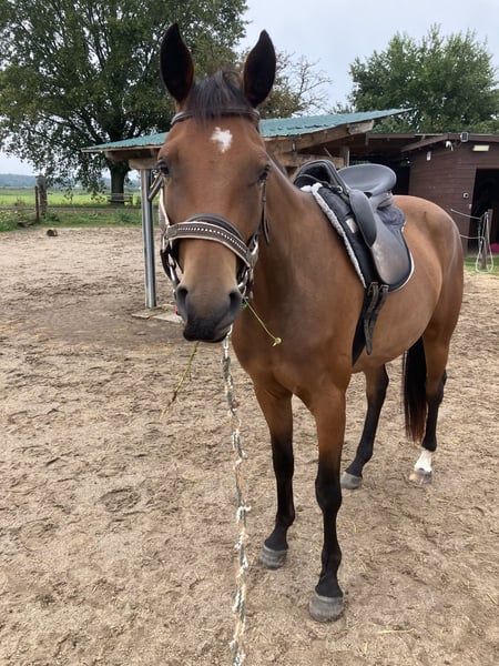 Zum Verkauf steht eine vielversprechende Trakehner Stute, geboren am 28.05.2022. Diese junge Dame besticht durch ihre elegante Erscheinung in allen drei Grundgangarten. Sie zeigt bereits großes Talent in der Dressur und hat das Potenzial, sich zu einer herausragenden Sportpartnerin zu entwickeln. Mit ihrem einwandfreien Exterieur und ihrem freundlichen Wesen ist sie sowohl für ambitionierte Reiter als auch für Züchter eine interessante Wahl. Durch ihren Vater Instagram weist sie ihm Pedigree EH Schwarzgold auf und mütterlicherseits lesen sich namenhafte Vererber, wie Syriano, Bardolino und Kostolany. Vom Wesen ist sie dem Menschen sehr zugewandt, ist wissbegierig und gleich auf auch sehr neugierig. Sie beherrscht mittlerweile etwas mehr als nur das Fohlen ABC. Spaziergänge, Führen und Freiarbeit liebt sie genau wie Putzen. Immerhin zog sie als Fohlen meinen Zuchtbezirksleiter in ihren Bann bei der Registrierung und erzielte glatt ausreichend Punkte für eine Prämierung. Letztes Jahr zeigte sie sich ebenfalls von ihrer besten Seite. Solang sie bei mir steht, wird Ophelia MT schonend angeritten. Bei ernsthaften Interesse an dieser bezaubernden Trakehner Stute aus erster Züchterhand freue ich mich auf Zuschriften.