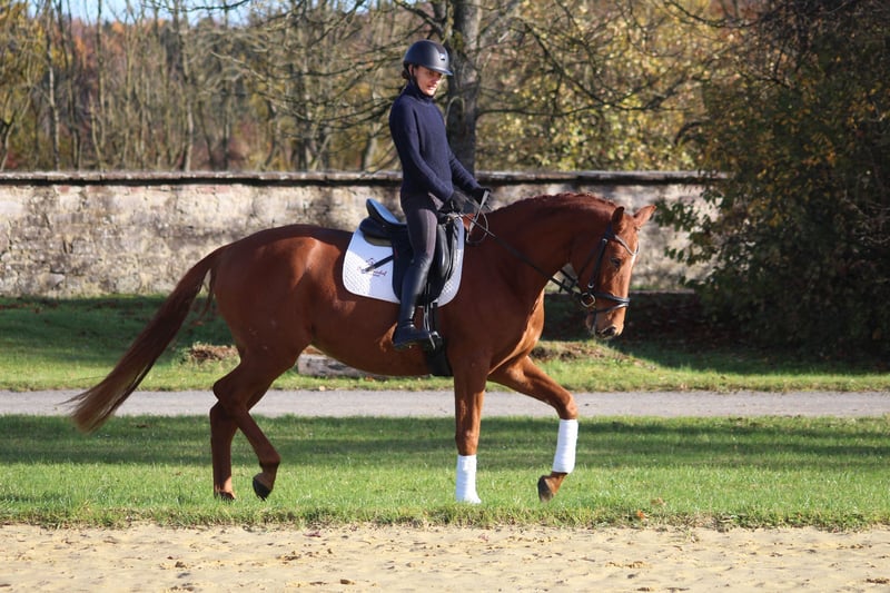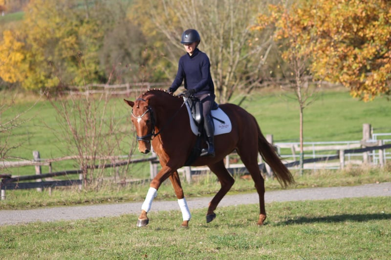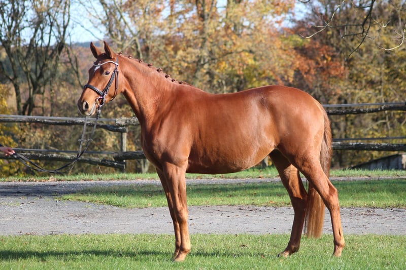 Desde nuestra cría de Trakehner, ofrecemos una potranca de 3 años, hija de Zauberdeyk, de la línea Waluna v Uckermärker / Helikon xx. Muestra una gran facilidad para el manejo y una actitud muy tranquila. Es hermana del semental premiado y aprobado, Whizzid, y su interesante pedigrí la hace adecuada tanto para la competición en diversas disciplinas como para la reproducción. Tiene un carácter muy equilibrado, es excelente en campo y se destaca por su serenidad y ganas de aprender. Deseamos para esta delicada y noble yegua una nueva familia que la cuide con cariño y que la apoye en su desarrollo. Es yegua premiada y ha obtenido una muy buena evaluación en la prueba de rendimiento para yeguas.