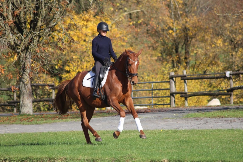 From our Trakehner breeding program, we offer a 3-year-old filly by Zauberdeyk out of Waluna v Uckermärker / Helikon xx. She is very rideable and calm, showing an excellent temperament. She is a sister of the licensed premium stallion Whizzid and possesses an interesting pedigree suitable for both versatility and breeding. She has a very balanced nature, is top in the field, and is characterized by her calmness and eagerness to learn. We are looking for a caring and loving new owner for this fine mare. She is a premium mare and has achieved a very good mare performance test.