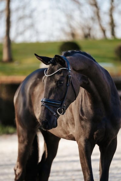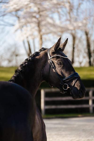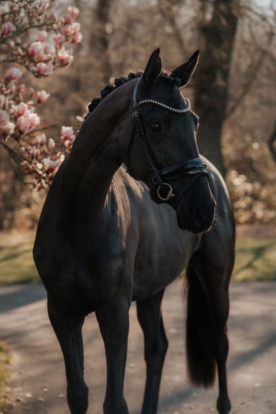 Kalimera is a 3 years old Trakehner Mare Standing 169cms ~ 16.2½ hands, born 13-Apr-2022 in Germany and currently in Denmark. UELN Number 276409090194222. Sired by Onyx (2018) out of the mare Kara Nigra (2008) from the KAVALLERIE, O 41 A (v.d. Leyen Hasselpusch), alt.Trak.fam. nr. 0155 family. Bred by Diether Pothen, Haltern am See in Germany and owned by FireFox Farm LLC in United States of America.