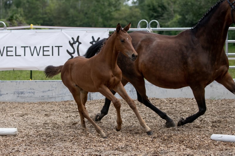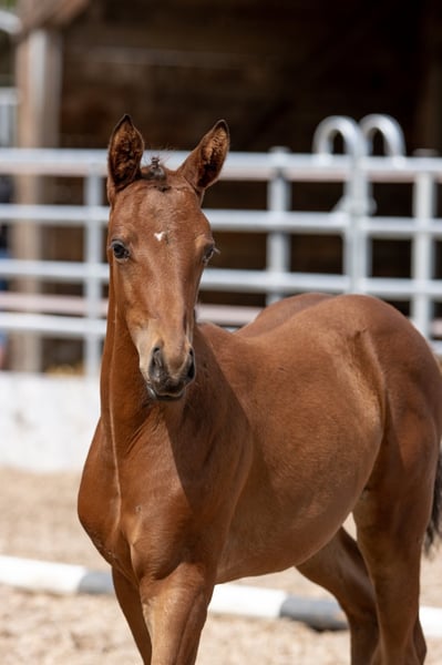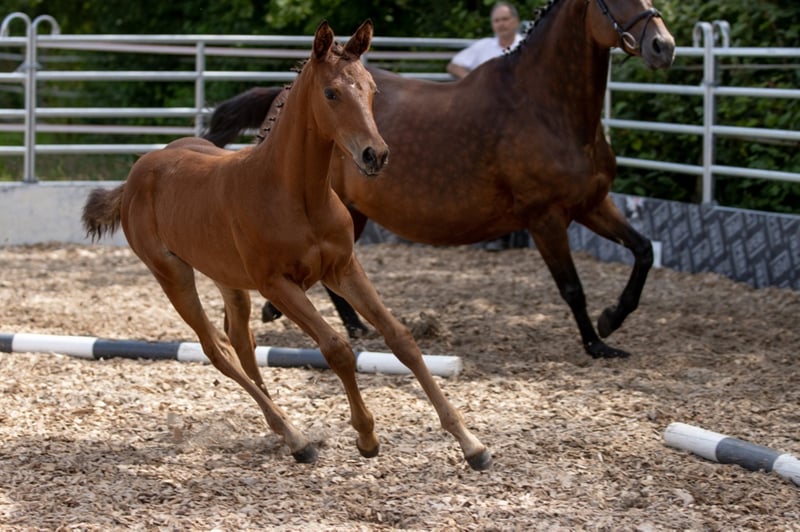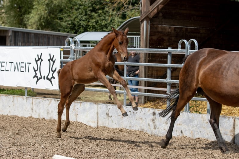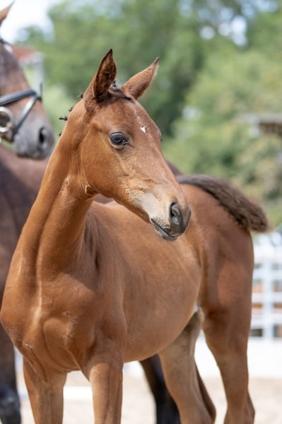 Very human-oriented, highly rated filly. Valuable pulled with a lot of blood connection, it is just as interesting for sport as it is for breeding! Curious and courageous, she is waiting for her new owner, who wants to make her a lot of fun! It is species-appropriate in the open barn in the herd and becomes regular?? ig dewormed and presented to the hoof worker. Foal rating 2021: Type 8.0 - K?rper 8.0 - Foundation 8.0 / Step 8.0 - Trot 7.5 - Gallop 8.5 / Overall impression 8.0 = 56.0 points