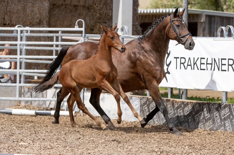Puledro molto orientato all'uomo, molto apprezzato. Prezioso tirato con molta connessione di sangue, è altrettanto interessante per lo sport come lo è per l'allevamento! Curiosa e coraggiosa, sta aspettando il suo nuovo proprietario, che vuole renderla felice! Cresce nel fienile aperto della mandria e viene regolarmente sverminata e presentata al lavoratore dello zoccolo. Valutazione puledro 2021: Tipo 8.0 - Corpo 8.0 - Fondazione 8.0 / Passo 8.0 - Trotto 7.5 - Galoppo 8.5 / Impressione generale 8.0 = 56.0 punti