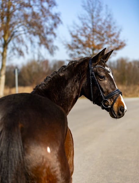 Dark brown 5-year-old Trakehner mare – refined and well-ridden For sale is an elegant, long-legged 5-year-old Trakehner mare in noble dark brown, with plenty of type and presence. She is registered in the Main Studbook and completed her mare performance test with an overall score of 8.0 – making her an interesting option both sportingly and for breeding purposes. Under saddle, she proves to be reliable, well-ridden, and pleasant in contact. She is sensitive to aids, provides good riding feel, and works with motivation. Her clear attitude and willingness to perform make her a versatile partner – suitable for ambitious leisure riders as well as riders with sporting goals. In daily handling, she is friendly, balanced, and uncomplicated. A pretty, modern all-rounder with potential and quality. ⸻ IMPORTANT: The mare is currently barefoot. With front shoes, she could possibly present herself even more expressively from the front. She has very good hooves and manages barefoot excellently. ⸻ 📍 Location: Rosenheim 📞 Contact gladly by phone or WhatsApp 📧 Also reachable via email ❗ Please do not send inquiries via Messenger
