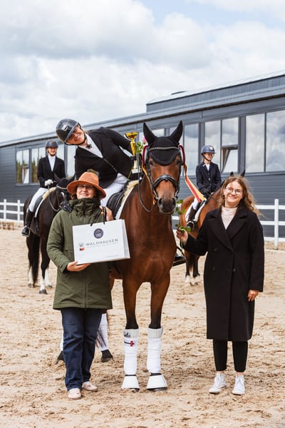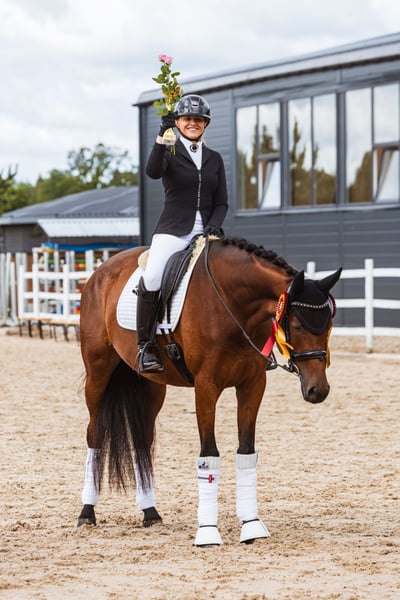 Zugelassene Elite-Stute 1,67 m / 16,2 hh Hervorragende Turnierergebnisse Springen und Ausreiten Sicher für Amateure Top saubere Röntgenbilder und PPE Im September wurde sie nationale Dressur-Champion der 4-Jährigen Klasse und besiegte alle KWPN-Hengste. ◾️Ksena ist eine äußerst talentierte junge Trakehner-Stute. Sie wird altersgerecht ausgebildet und zeigt bereits grüne, aber saubere fliegende Wechsel in beide Richtungen, Schulter-in, Seitengänge, Pirouetten und kann unter dem Sattel einige versammelte Schritte zeigen. Sie ist sehr ausgeglichen und vermittelt ein sehr gutes Gefühl unter dem Reiter, bewegt sich vom Hinterbein durch den Rücken bis zum Zügel. Das Reiten in der Turnierprüfung fällt sehr leicht, da sie wie ein Uhrwerk läuft: immer im gleichen Rhythmus und sehr ruhig. ◾️Die Stute hat ein unglaubliches Wesen und eine ausgezeichnete Arbeitsmoral. Sie ist niemals schreckhaft, stets willing zu arbeiten und gibt immer ihr Bestes. Nie buckelt sie, wird selten unruhig oder zeigt typische junge Pferdeverhalten. Sicher, sicher, sicher! Und mit einem verspielten, anhänglichen Charakter! 🐻❄️ ◾️Sie wurde auf der größten Trakehner-Zuchtstätte der Welt geboren. Sie stammt aus sehr guten Zuchtlinien: Der Hengstlinienstamm bringt das Dressurblut von einem der bekanntesten Trakehner-Zuchtbetriebe – Klosterhof Medingen in Deutschland. Ihre Mutterlinie führt zum Grand Prix-Hengst Horalas, der in den USA mehrere Jahre als Trakehner Horse of the Year für seine sportlichen Leistungen ausgezeichnet wurde. ◾️Sie wurde 2024 bei der jährlichen Trakehner-Hengst- und Stutenleistungsprüfung vorgestellt und von erfahrenen Mitgliedern des Trakehner Verbands in Deutschland als ELITE-Stute bewertet. Sie wurde in das erste Zuchtbuch der Trakehner aufgenommen. ◾️Klassisches Dressurtraining, beste Pflege und abwechslungsreiche tägliche Routine, die sie bei mir erhält: Reiten in Halle und im Freien, Waldritte, Springen (Jagdtyp, Parcours bis 80 cm), Handarbeit, Dehnübungen; bester Hufschmied des Landes; hochwertige Futter, Ergänzungsfuttermittel, tägliche Weiden und viel Liebe 🩷 ◾️Diese Stute ist ein äußerst freundliches Pferd, und ich suche die passende Person für sie. Ich habe eine sehr enge Bindung zu ihr aufgebaut, sie ist mein Herzenspferd. Mein Ziel ist es, eine Person zu finden, die eine ehrliche und vertrauensvolle Beziehung zu ihr aufbauen möchte, an Turnieren teilnimmt, Schleifen gewinnt und sich jeden Tag sicher und glücklich fühlt – so, wie ich es jetzt tue. Ich habe zahlreiche Videos aus unserem Alltag, die das belegen. Top saubere Röntgenbilder und PPE Vollständiges Ausreitvideo: https://youtu.be/C16AuodUlIA?si=55ImavuQ7Lf1CB3J Vollständiges Dressurvideo: https://youtu.be/lacjZy6velE?si=1qH6AHiz5DhibgFA Frei von Piro- und anderen Krankheiten Ich habe bereits Pferde in die USA verkauft und kann Referenzen vorweisen. Ich kümmere mich um alle Exportformalitäten.