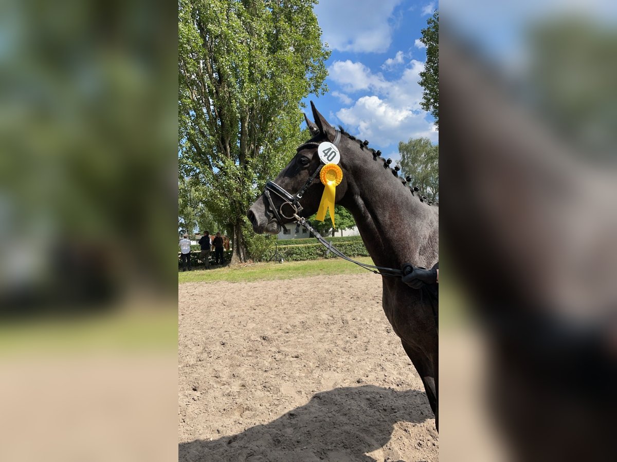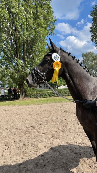 Name: Bartels Deern Geboren: 15. April 2021 Abstammung: von Dezember x Hancock x Heraldik Stutenstamm: Balbine (selten) Eingetragen im Stutbuch 1 Bartels Deern ist eine junge, typvolle Trakehnerstute mit sehr guten Grundgangarten und einem ausgeglichenen, freundlichen Wesen. Sie überzeugt durch ihre Lernfreude, ihren klaren Kopf und ihren einwandfreien Charakter. Besonders hervorzuheben ist ihre große Menschenbezogenheit und sie ist im täglichen Umgang unkompliziert und brav. Mein 83 jähriger Opa kann sie reiten, genauso wie meine 8 jährige Nichte. Sie steht aktuell in einer gemischten Herde und zeigt sich dort sozial und unproblematisch. Neue Aufgaben nimmt sie interessiert und motiviert an. Gesundheitlich ist zu erwähnen, dass sie vorne rechts eine Fehlstellung hat und daher derzeit Eisen trägt. Zudem besteht hinten rechts ein kleiner Schaden an der Strecksehne, der sie aktuell nicht weiter einschränkt. Aktuell liegen keine Röntgenbilder vor. Bartels Deern eignet sich ideal für jemanden, der eine junge, charakterstarke Stute mit solider Abstammung und Entwicklungspotenzial sucht. Weitere Informationen gern per WhatsApp unter 01515 8434799.