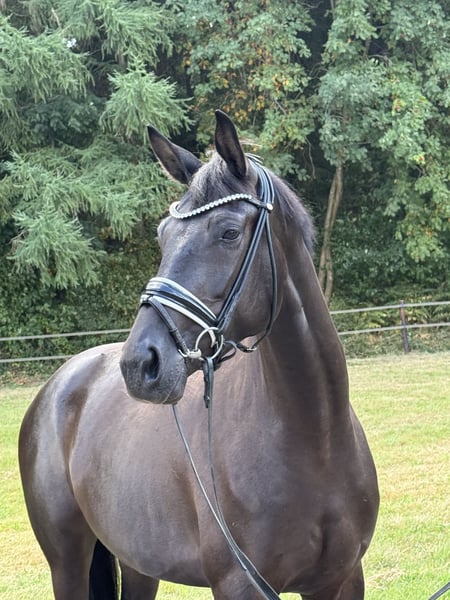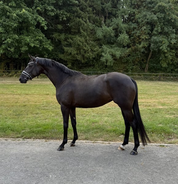 For sale is an elegant Trakehner mare born in 2021. She presents herself in an appealing black coat and has a height of 167 cm. This talented mare is particularly suitable for dressage and already shows good potential in her training. Her movements are smooth and springy, making her a promising partner. The mare is well-mannered, well-educated, and has a friendly character. She is suitable for both experienced riders and those who are willing to work with her with professional help. Last year, she completed the mare book registration of the Trakehner Association with above-average scores, making her interesting for breeding as well. If you are interested or need further information, please feel free to contact me.