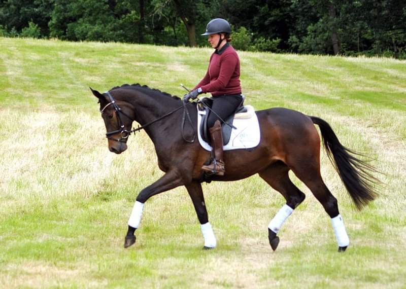 3-letnia Valentiana to bardzo atletyczna młoda klacz z dużą ilością nóg, dużymi elementami, trzema bardzo taktownymi i dobrymi podstawowymi chodami. W skoku pokazuje dużo przeglądu, radości, umiejętności i manier. Wyposażona we wspaniałe wnętrze! Jest łatwa w obsłudze i już imponuje rytmem i delikatnym, lekkim zachowaniem pod jeźdźcem. Na naszych młodych koniach jeździmy bardzo spokojnie i celowo unikamy ekscytujących występów. Jej ojciec His Moment był czempionem ogierów na licencjach trakeńskich i jest ojcem trzech licencjonowanych ogierów i różnych czempionek. Jego potomstwo również wyróżnia się w sporcie. Jej matka Valentine jest bardzo nowoczesną córką elitarnego ogiera TSF High Motion z krótkimi sukcesami w Grand Prix i wnuczką Showmastera z wieloma sukcesami w Grand Prix i Grand Prix Special. Od tego czasu Valentine wydała na świat kilka bardzo utytułowanych źrebiąt. Jest półsiostrą odnoszącego sukcesy na poziomie zaawansowanym ogiera ujeżdżeniowego Valpiano, a także klaczy premium Vittoria, Veruschka, Vitalia I i II oraz Valenta. Rodzina klaczy Vilja po Julmond z Hämelschenburga obejmuje sprawdzone ogiery Van Deyk (Grand Prix), Vincent, Valerian (zwycięzca HLP, ujeżdżenie na poziomie zaawansowanym (S), wkkw) i Velasquez (skoki przez przeszkody na poziomie średnim (M)), a także mistrza świata w wkkw Petera Thomsena - Vilano.