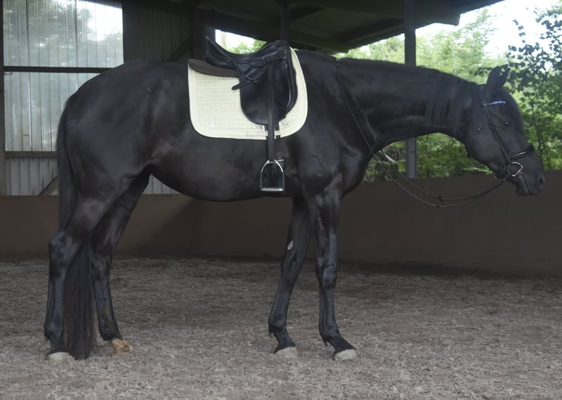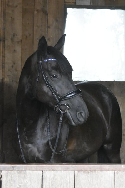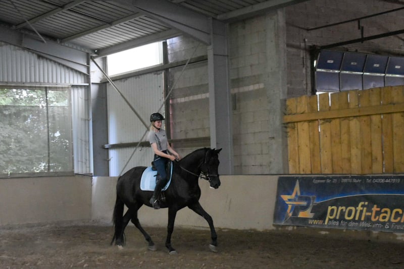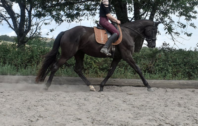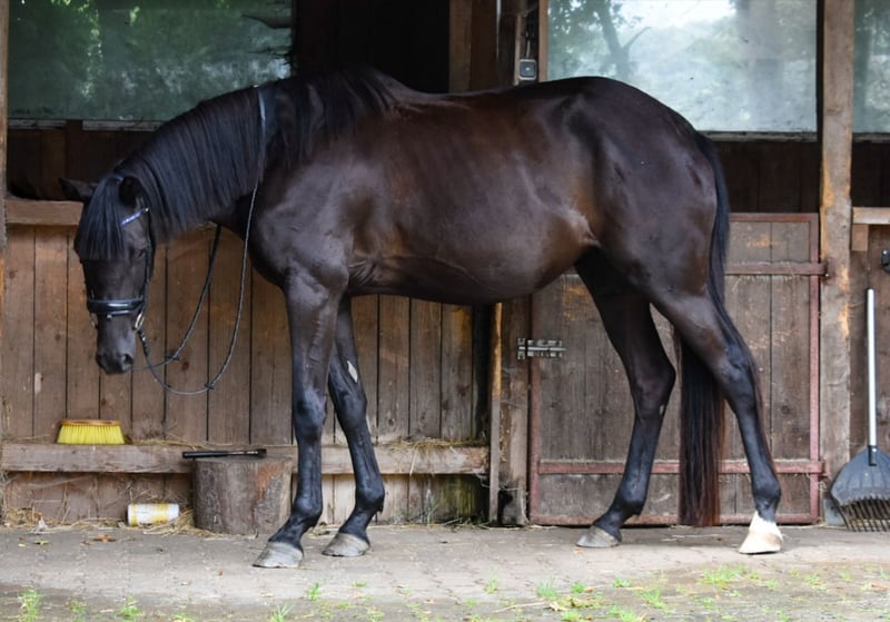 Hanna ist eine 5-jährige Trakehner Stute mit einem Stockmaß von derzeit ca. 170 cm. Sie stammt ab von Speedway aus einer Mutter von Tarison. Die Stute wurde im Sommer angeritten und befindet sich aktuell in der Grundausbildung. Unter dem Sattel zeigt sie sich motiviert, ist lernwillig und hat bisher keine Unarten wie Bocken oder Steigen gezeigt. Gelegentlich reagiert sie aufmerksam auf ihre Umgebung, bleibt dabei jedoch jederzeit kontrollierbar. Hanna kennt Halle, Platz sowie Gelände. Aufgrund ihrer Abstammung und ihres Exterieurs ist Hanna vor allem für den Dressursport interessant. Standort: 55758 Preis auf Anfrage