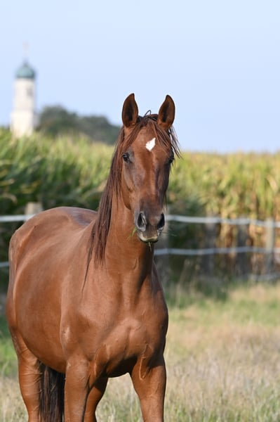 Karma impresses with her charisma and her excellent basic gaits. She is exceptionally kind, rideable, intelligent, and eager to learn. Although Karma was started under saddle quite late, she makes it particularly easy for the rider due to her attentive and willing nature. Sire: Kentucky (paternal grandfather is the elite stallion HOHENSTEIN) Dam's Sire: LeRouge Karma's lineage is of outstanding quality, including various highly successful Trakehners in breeding and sport. Very good vet check available.
