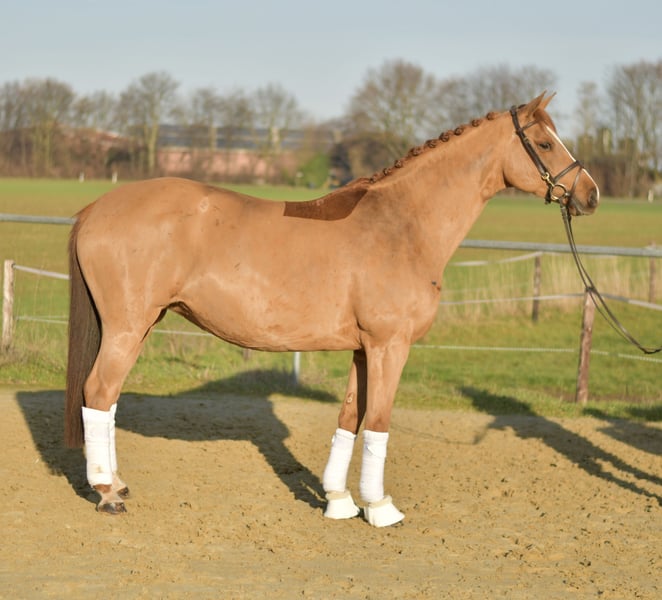 Discover the perfect family horse! This beautiful mare, born in 2017 and standing at 16.1 hands, is a true delight for riders of all ages. Whether jumping or dressaging, she performs excellently in every discipline and impresses with her talent. With her gentle nature and reliability, she is ideal for trail rides – always well-behaved and dependable. Fun is guaranteed, whether riding with or without a saddle, with or without a bridle. This mare is a joy to handle and perfectly suited for teenage girls who want to enjoy riding. ❤️ Her impressive pedigree is worth highlighting, making her also an attractive broodmare. As a foal, she was a champion at the Trakehner Verband and is officially registered in the studbook. Don’t miss the opportunity to meet this dream partner! She is sure to win your family’s heart. Come by and see this extraordinary horse for yourself! --- **Special Offer:** Immediate purchase entitles you to a 5% discount on the sale price! **Test Ride:** We offer you the chance to test this horse for one week. During this trial week, talented trainers can accompany you, and you have the option to combine lessons with testing. Please note that this trial week is subject to a testing fee, which is not deducted from the purchase price. **Trial Riding:** Feel free to experience the quality of this mare firsthand. The cost for pre-riding, demonstration, or trial riding is €30 per person. Come by and discover how much joy and fun this horse can bring to your family!