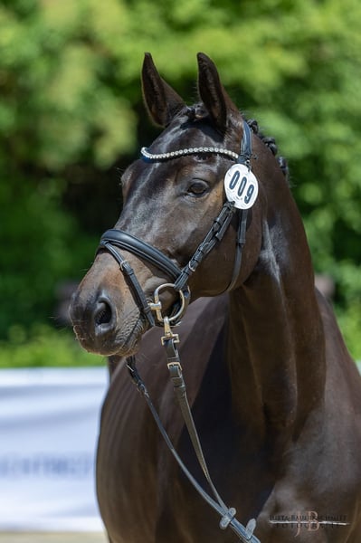 Anabel è una meravigliosa cavalla Trakehner, molto equilibrata, che viene ceduta con grande dispiacere solo a una casa migliore. È stata in mio possesso dalla fine del 2021 e, a causa di varie circostanze, è stata montata con cautela solo a 7 anni. Nel 2024, Anabel ha vinto la sua prova di selezione in Baviera (Tierhaupten) come migliore della giornata. Lo scorso anno è stata inseminata per la prima volta; Anabel ha subito concepito e quest'anno ha dato alla luce un puledro maschio premiato da Hallifay Lyng senza complicazioni. Durante la valutazione del puledro, Anabel è stata registrata decentralmente con un punteggio di 54,5 (raccomandazione del giudice di allevamento Neel Schoof di presentare la cavalla centralmente per ottenere il premio di associazione). Dopo la pausa per il puledro, Anabel è attualmente in fase di riaddestramento. È assolutamente equilibrata e tranquilla nel maneggiarla, ma non è adatta ai principianti! Per motivi personali/familiari, cerco per lei una casa amorevole. Sarà ceduta solo a mani esperte. Per ulteriori domande, sono a disposizione.
