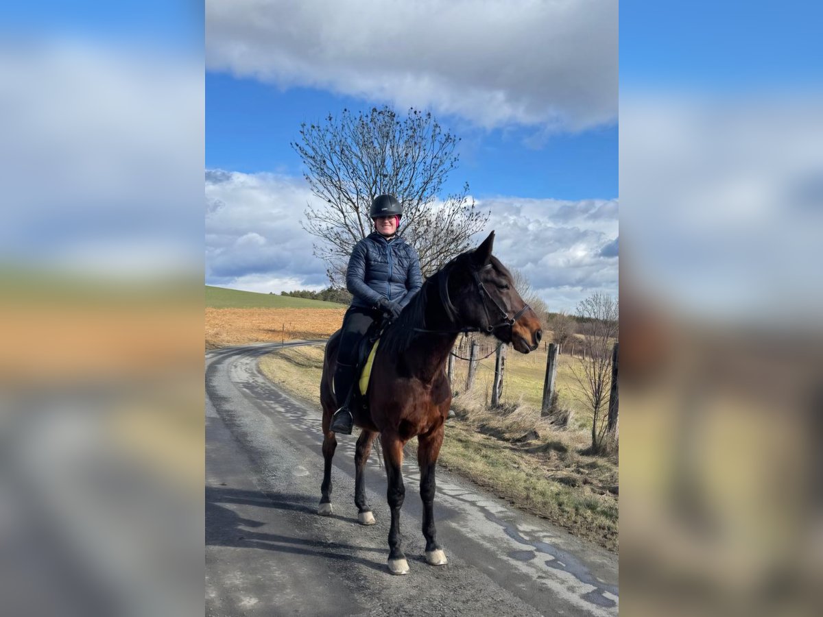 Xaver ist ein ganz lieber, netter und hübscher Traberwallach. Er ist 10 Jahre alt und ca 1,58 m groß. Er ist ganztägigen Koppelgang in einer größeren Herde gewohnt. In der Herde ist er total unkompliziert und sicherlich auch für eine Offenstall-Haltung geeignet. Xaver war ein treues Rennpferd, wurde immer bestens versorgt und geliebt. Deshalb haben wir uns jetzt Zeit gelassen, ihn mit Ruhe zu einem soliden Freizeitpferd auszubilden! Er ist ein fantastischer Ausreitpartner für stundenlange Geländeritte. Er geht immer zügellos im Schritt, brav im Trab, (noch) schnell im Galopp und entspannt sich danach gleich wieder. Ich reite ihn gerne gebisslos, ist aber kein Muss. Im Viereck geht er auch brav, allerdings hat er den Sinn noch nicht verstanden. Longieren und Bodenarbeit machen ihm Spaß. Er ist sehr genügsam und angenehm, er geht gerne jeden Tag, es stört ihn aber auch nicht wenn er nur 2x im Monat bewegt wird. Er ist das ideale Pferd für Wander- und Distanzreiter. Sicherlich ist er auch für Wiedereinsteiger geeignet. Sehr brav beim Hufschmied und Transport.