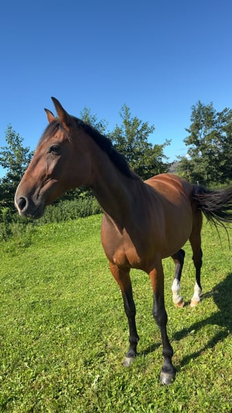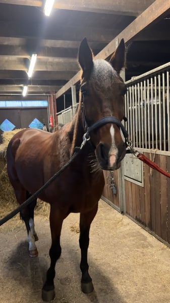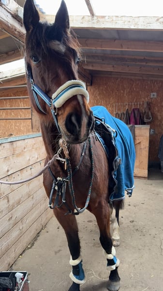 Auf diesen Wege suche ich ein neues 5⭐️ zu Hause für meinen Traber Wallach Tom. Tom ist 8 Jahre alt und ungefähr zwischen 1.65-1.70m groß. Er ist ein super lieber Kerl und ist stets motiviert in der Arbeit. Aktuell ist er nicht wirklich im Training,wodurch die Muskeln fehlen. Er wird langsam aber wieder angeschoben. Er steht aktuell nachts in der Box und ist übern Tag 9 Stunden draußen,das gefällt ihm so auch sehr gut. Er ist in der Herde nicht ranghoch,weiß aber sich zu zeigen. Tom ist nicht wirklich geritten,ich selbst bin ich aufgrund meiner Schwangerschaft nicht oft geritten. Auch da ich ihn sehr stark aufbauen musste als ich ihn gekauft habe. Jetzt fehlt mir leider einfach die Zeit ihn im Top Zustand zu halten. Er baut zum Winter immer etwas ab,aber ich denke mit regelmäßigen Training ist das alles händelbar. Ich würde sagen das er nichts für reine Anfänger ist. Er ist in jeder Situation händelbar und nie bösartig. Leider hat er bei sehr viel Feuchtigkeit mit strahlfäule zu kämpfen,andere Krankheiten hatte er bei mir nie. Im letzten Jahr wurden die Zähne gemacht, Er Beherrscht so gut wie jede Gangart,der Galopp klappt an der Longe auch,aber am besten wenn er regelmäßigen training ist. Bei weiteren Fragen stehe ich gerne zur Verfügung